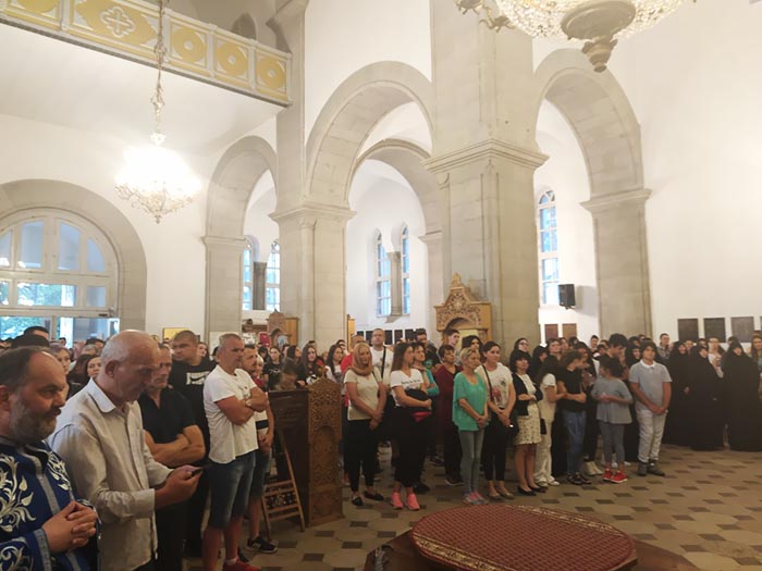 Подсјетивши окупљени народ на благослов Епископског савјета за вечерашње окупљање да се оно завршава Молебаном, отац Остоја је позвао сабране да, по завршеном молепствију, уђу у храм како би се помазали светим уљем и цјеливали икону Светог Василија Острошког, после чега ће се сви у миру разићи својим домовима.