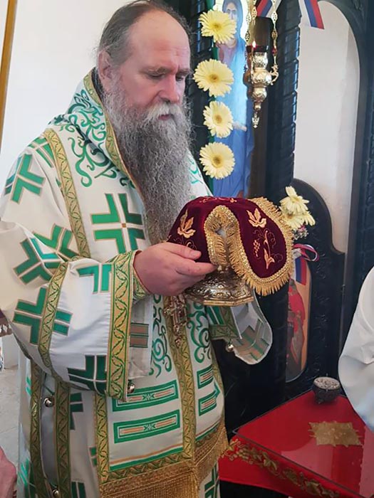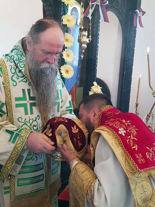 У наставку је служена Света Архијерејска Литургија у току које су унесене Мошти новојављеног Свештеномученика Риста (Јарамаза) Косијеревског.