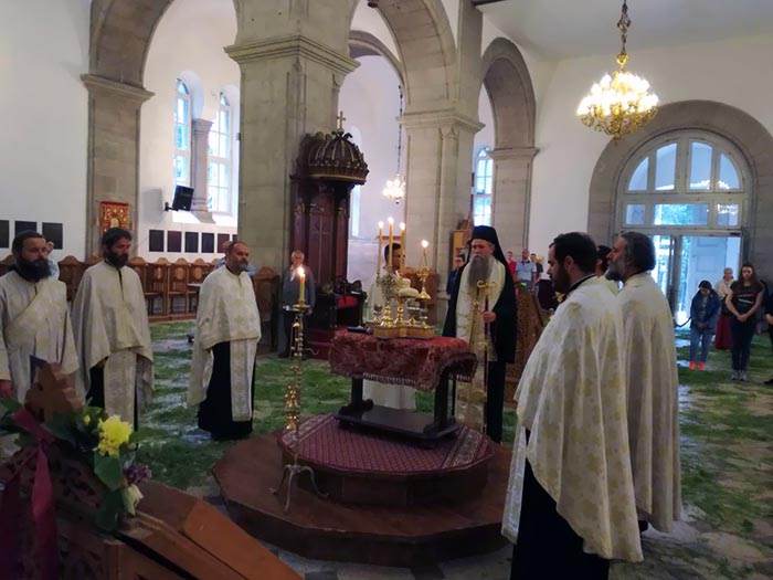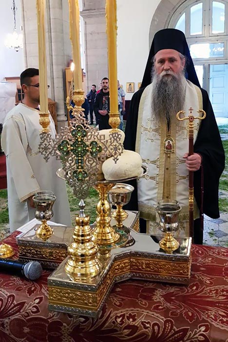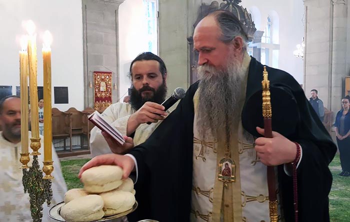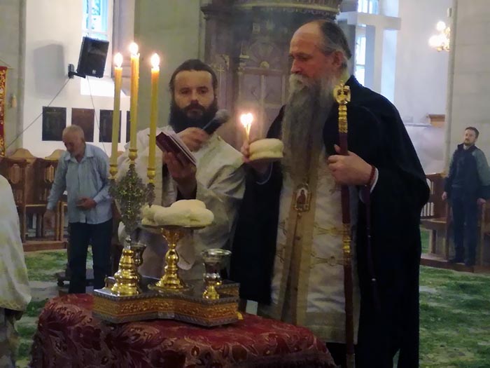 Његово преосвештенство Епископ будимљанско-никшићки Г. Јоаникије, служио је са свештенством Саборног храма свечано бденије са петохљебницом у навечерје празника Силаска Светог Духа на Апистоле - Педесетницу, у суботу 26. маја 2018, у храму Светог Василија Острошког у Никшићу.