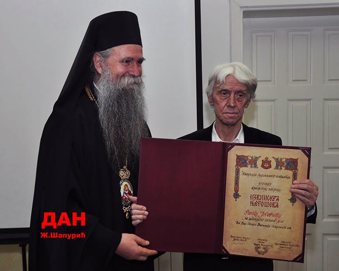 Добитнику награде Ранку Јововићу је Његово Преосвештенство Епископ Јоаникије уручио повељу, Јован Делић, предсједник жирија је предао плакету, рад ак. вајара Љубише Манчића, а власник компаније Мона Ђорђије Момировић новчани износ награде.