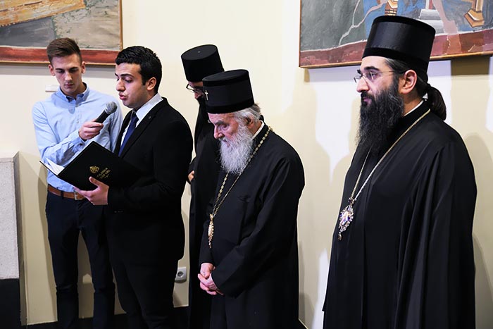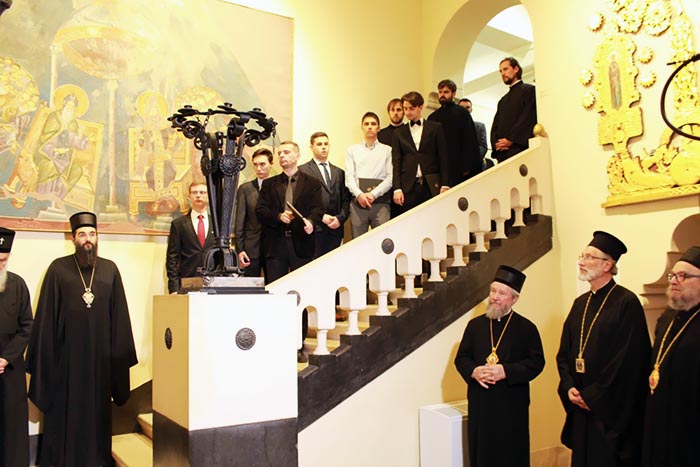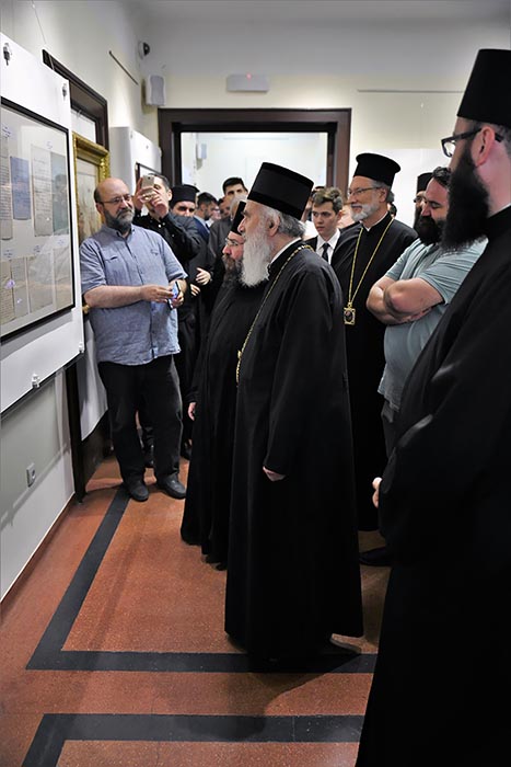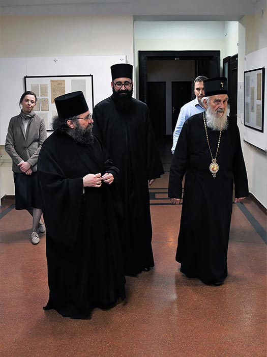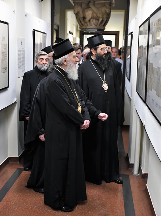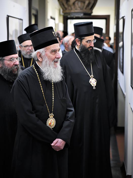 О изложби су говорили ђакон Владимир Радовановић, управник Музеја Српске Православне Цркве, у име приређивача Стефан Глигић и монах Игнатије Марковић. Отварању изложбе присуствовали су и ученици и професори Богословије Светог Саве на челу са ректором Богословије протојерејем-стврофором др Драганом Протићем, монаси, свештеници, верни народ. Изложба ће бити отворена до 2. јуна 2018. године.
