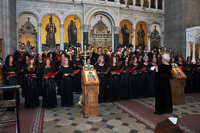 Уважене госте, публику и чланове хора поздравио је јереј Остоја Кнежевић, старјешина никшићког Саборног храма.