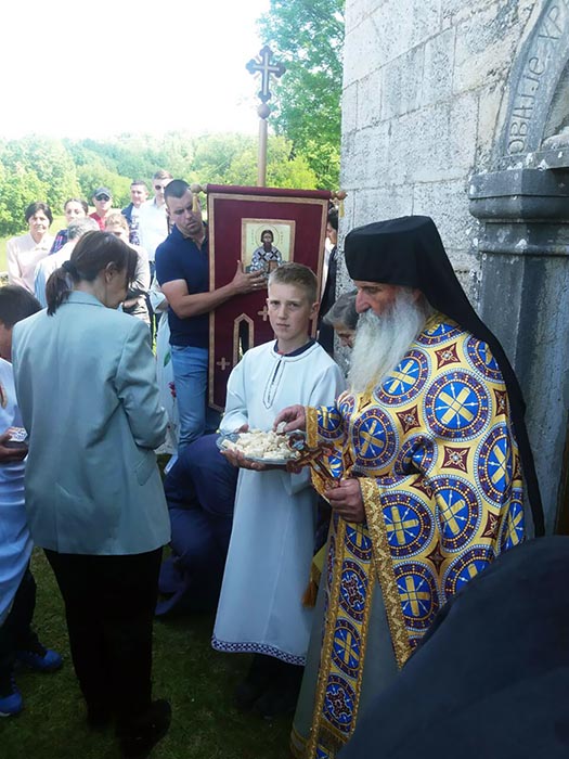 У наставку Свете Литургије храм је опходила литија, а потом је благосиљан славски колач и жито.