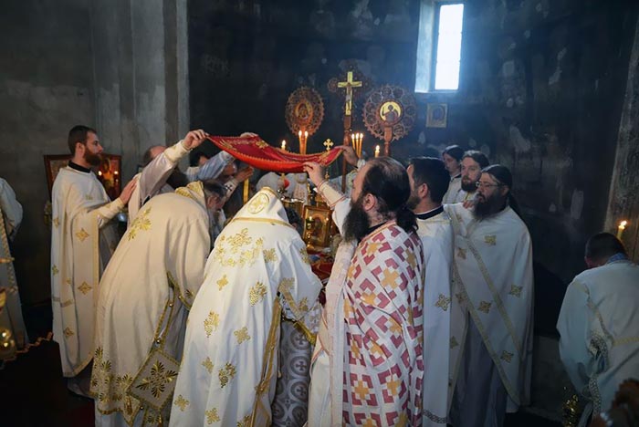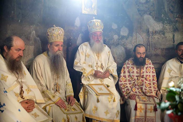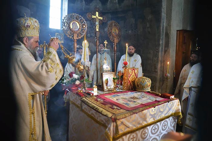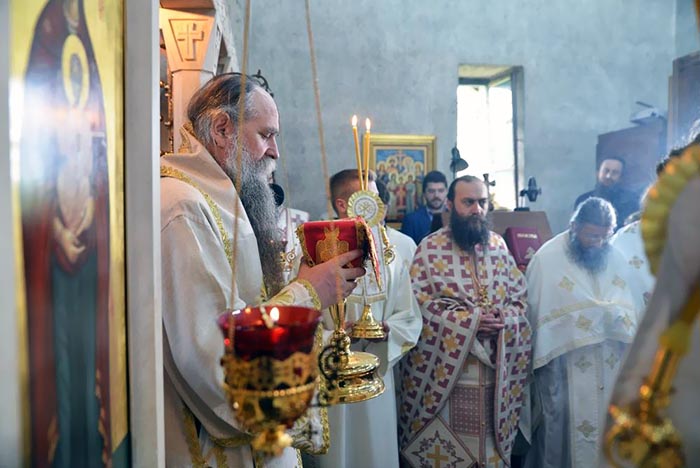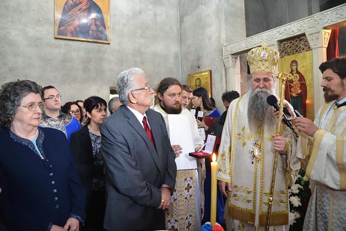 Владика Јоаникије је, поздрављајући бројне драге и уважене госте, изразио захвалност и г.-дину Милану Лешићу из Торонта на његовом доброчинству у обнови наше Епархије. Велику радост сабраном вјерном народу, свештенству и монаштву цијеле Епархије, својим доласком причинио је и Високопреподобни Игуман хиландарски о. Методије са сабратом о. Нектаријем.