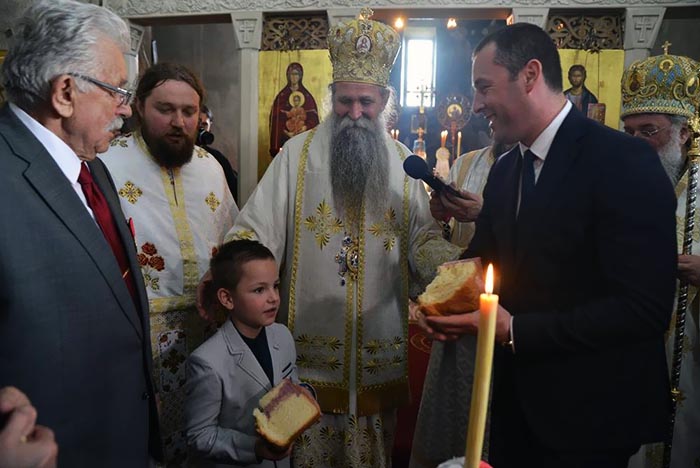 У наставку је освештан славски колач и уприличена трпеза братске љубави, а кум овогодишњег славља био је г.-дин Драгослав Шћекић, предсједник општине Беране, који је са великом љубављу заједно са својом породицом приредио славску трпезу, на чему му је заблагодарио Преосвећени владика Јоаникије, честитајући му, у исто вријеме, крштење ћеркице Николије.