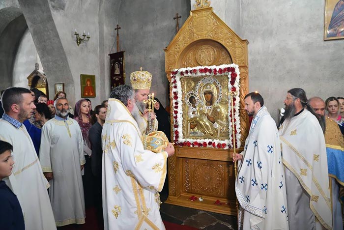 „Мајка Божја нас највише помаже, јер је Она мајка и наша. Она је мајка сваке хришћанске душе, сваког дјетета и свих нас. Њеном материнском срцу су блиске наше патње, наш бол, туга, страдања, муке, жеље, све то Она осјећа и пролази кроз Њено материнско срце. Највећи бол је осјетила кад је била под крстом сина Њеног и нашег Спаситеља и Господа. Зато је веома значајно да се Њој обраћамо и молимо. Она је, заувијек, остала она љествица којом силази нама Бог, а којом се ми пењемо на Небо. Царица и Владичица наша“, поучавао је Преосвећени Епископ.