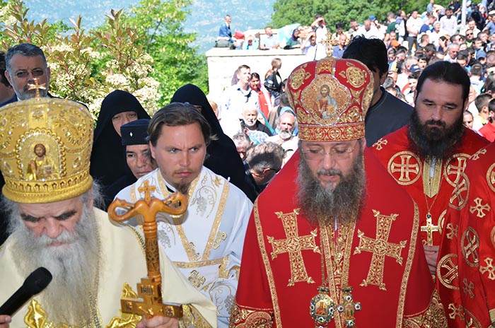 Централном саборном Архијерејском Литургијом на платоу испред Горњег Острога началствовао је Његово Високопреосвештенство Архиепископ цетињски Митрополит црногорско-приморски и игуман острошки Г. Амфилохије, уз саслужење Високопреосвећеног Митрополита бориспољског и броварског УПЦ Московског патријархата Г. Антонија и преосвећене господе епископа Новограчаничког и средњезападноамеричког Лонгина и Будимљанско-никшићког Јоаникија, те бројног свештенства и свештеномонаштва СПЦ и УПЦ уз молитвено учешће више хиљада вјерника.