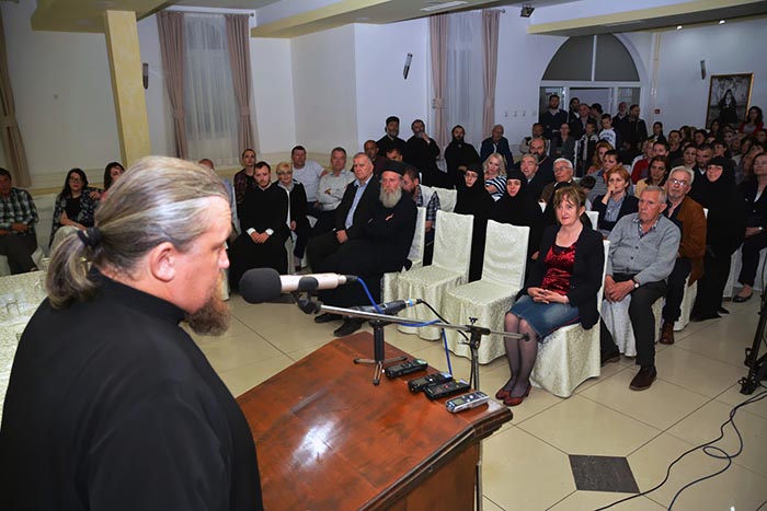 О оцу Лазару и књизи „Положи наду на Господа - Духовна поетика оца Лазара Острошког“ говорили су: протосинђел Сергије Рекић, настојатељ манастира Острог, протосинђел Климент Бољевић, настојатељ манастира Прасквица, проф. Нела Дабановић, једно од духовних чада из гнијезда које је отац Лазар свијао у манастиру Острогу и протојереј Слободан Јокић, архијерејски намјесник никшићки.