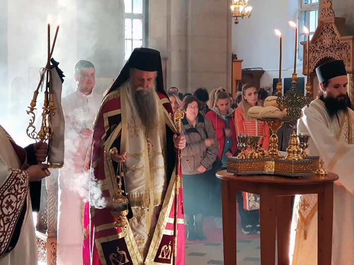 Сабрани вјерни народ у радости Христовог Васкрсења и наступајућег празника поздравио је Преосвећени Епископ јуријевски Арсеније.