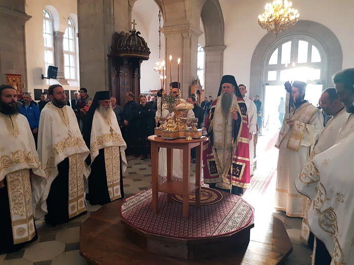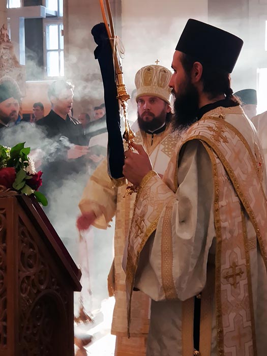 „Радујемо се многоструком радошћу, вечерас имамо овдје, што нам је посебно драго, драге нам госте: Његово Преосвештенство Епископа јуријевског Г. Арсенија из славног и опјеваног града Великог Новгорода, који је један од темеља и корјена руске историје. У гостима нам је и драги, али њега већ доживљавамо као домаћег, Преосвећеног владику источно-америчког Иринеја, који је и раније, на овај свети празник, посјећивао наш град, учествовао у литијама и нашим свечаностима“, казао је Његово Преосвештенство.