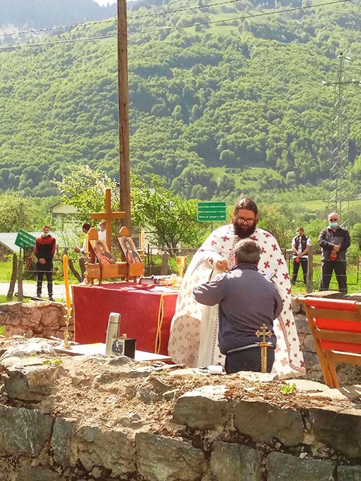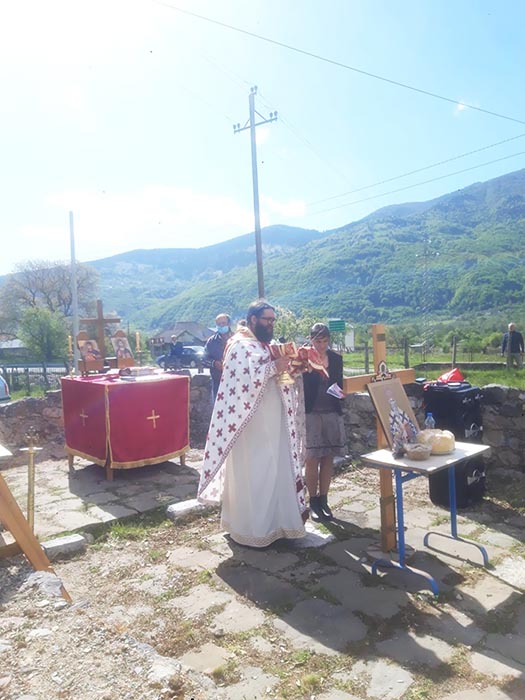 Свету Литургију, на празник Светог Василија Острошког, у уторак 12. маја 2020. године на темељима некадашњег храма, посвећеног острошком Светитељу и Чудотворцу, у Мартиновићима код Гусиња, служио је надлежни парох јереј Бојан Радуновић.