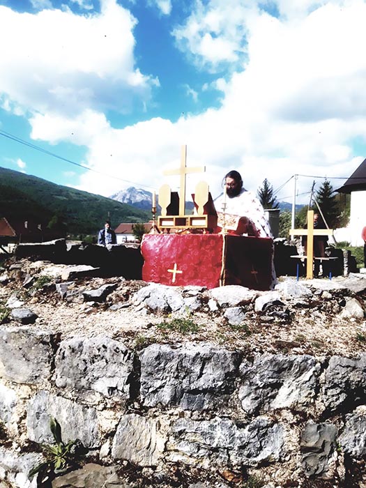 Светом Литургијом и резањем славског колача прослављена је слава храма Светог Василија Острошког Чудотворца, који се обнавља у Мартиновићима код Гусиња.