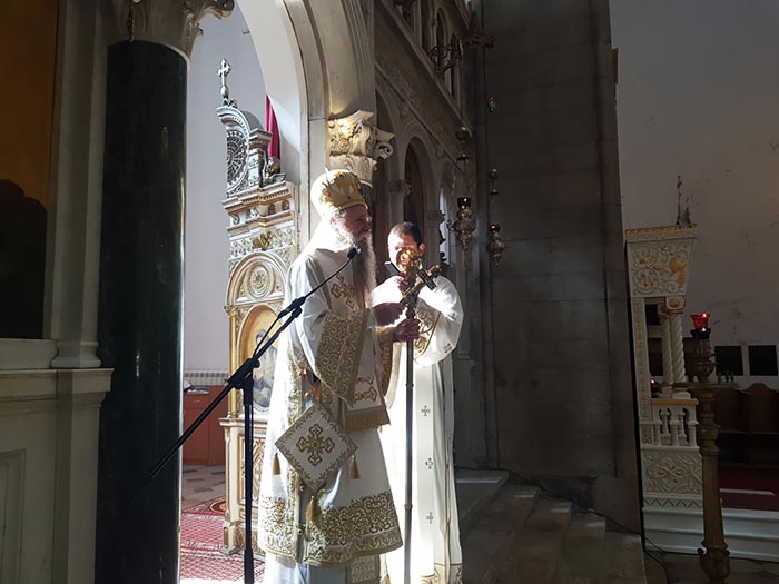 У литургијској проповједи Преосвећени Епископ се осврнуо на јеванђељску причу о чудесном исцјељењу раслабљеног у Бањи Витезди. И данас у Јерусалиму, подсјетио је Владика, постоји Бања, иако се она више не користи, у којој су се окупљали болесници у дан када је анђео Господњи силазио и узбуркавао воду, те се онај ко први уђе исцјељивао.