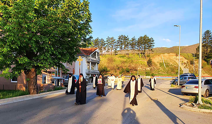 Промисао Господњи је такав да Светог Георгија прослављамо, скоро увијек, послије Васкрсења Христовог. Преосвећени Епископ Јоаникије указао је на ријечи црквеног пјесника по којима се Свети Георгије појавио као сунце.