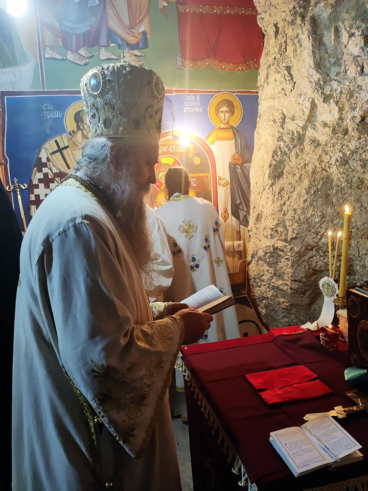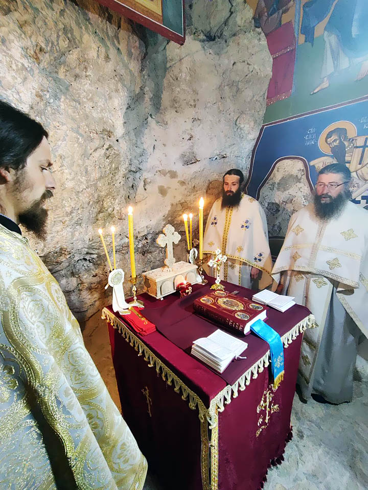 „Дјелимично су извршена археолошка истраживања, па смо нашли старе темеље цркве и конака, има их још, али оно што је основно и првобитно, то је обновљено; ова црквица, која је подобна Острошкој пештери, сазидана при стијени, или манастиру Куманици, и првобитни коначић у коме може да живи један или двојица монаха. Али, ово је изузетно драгоцјено и свето мјесто и имао је разлога наш о. Јеротеј, сабрат манастира Ђурђеви Ступови, да се жртвује за обнову ове светиње. Заиста, је он овдје уложио велики и благословен труд и велико умијеће да ову светињу обнови заједно са приложницима и вјерним народом“, указао је Његово Преосвештенство.