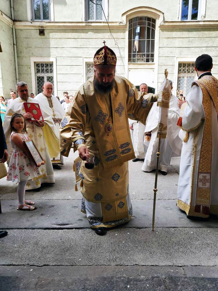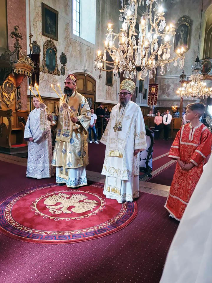 На крају свете Литургије, Владика Лукијан је верном народу из Сегедина представио високог госта, Преосвећеног Епископа будимљанско-никшићког и срдачно му заблагодарио на посети и за благослове светих угодника Божијих из Црне Горе које са собом доноси. Владика Методије је сабраним верницима честитао храмовну славу поучавајући их о значају данашњег празника.