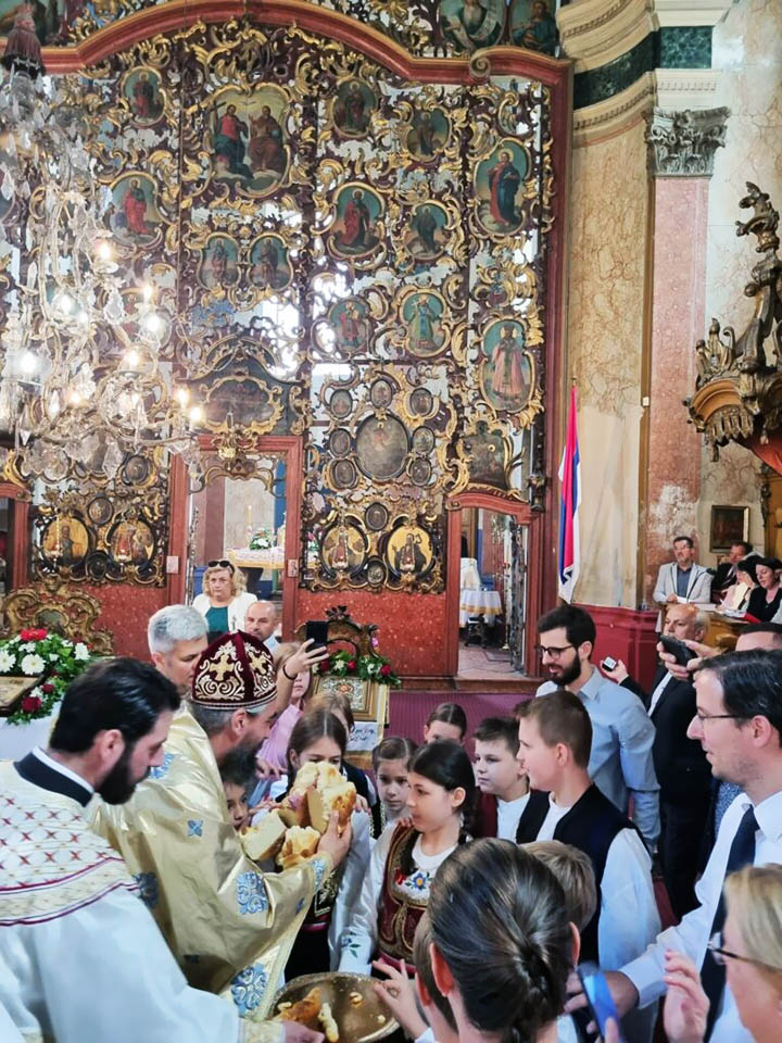 Затим је уследила литија око светог храма и благосиљање славских дарова. Архијерејски намесник сегедински, отац Далибор Миленковић се захвалио господи епископима који су својим доласком и служењем у сегединском храму увеличали данашњу прославу храмовне славе.