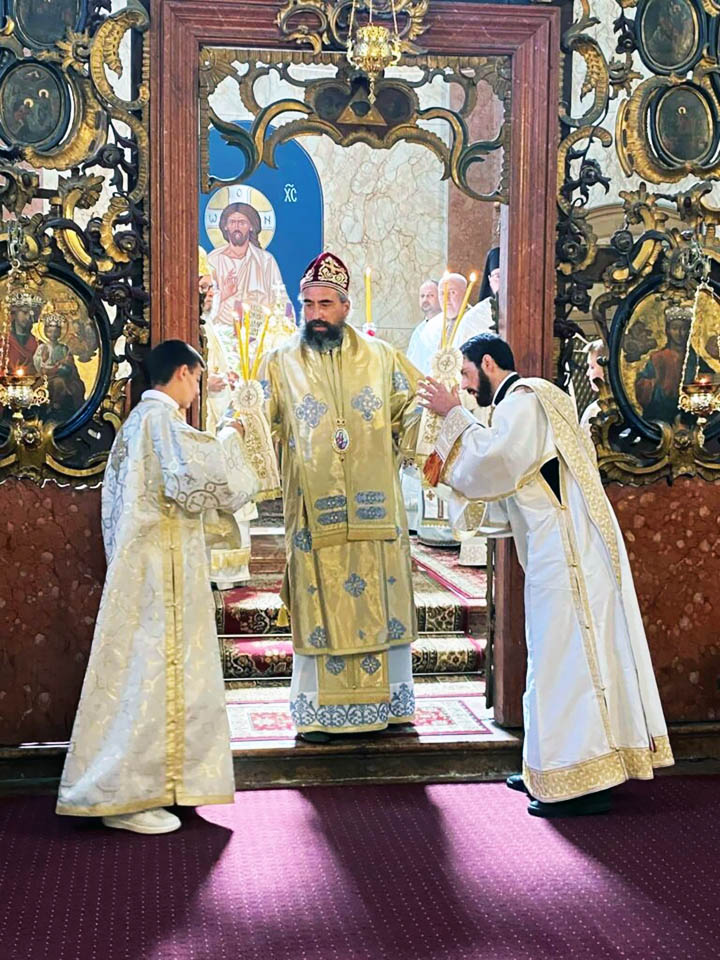 Преосвећеним архијерејима саслуживали су јеромонах Варнава Кнежевић, протојереји-ставрофори Илија Галић и Аурел Бекан из Румунске православне цркве, протојереј Дина Чоков из Темишварске епархије, протонамесници Светомир Миличић и Далибор Миленковић као и ђакон Стефан Милисавић.
