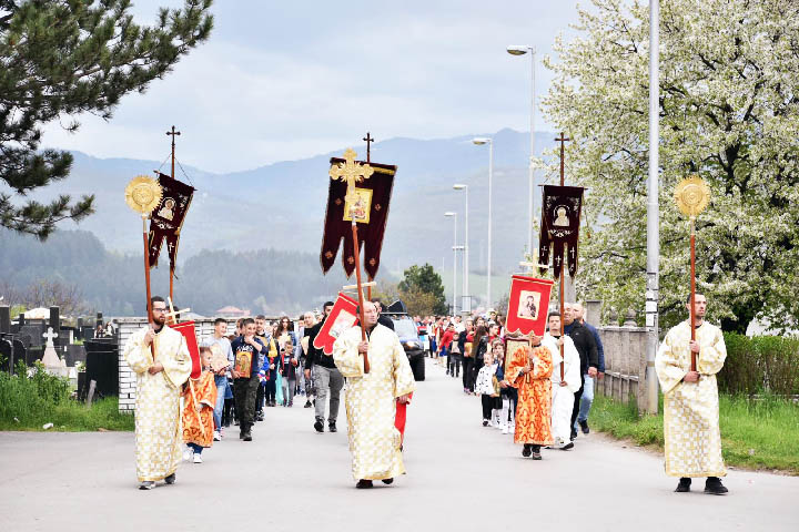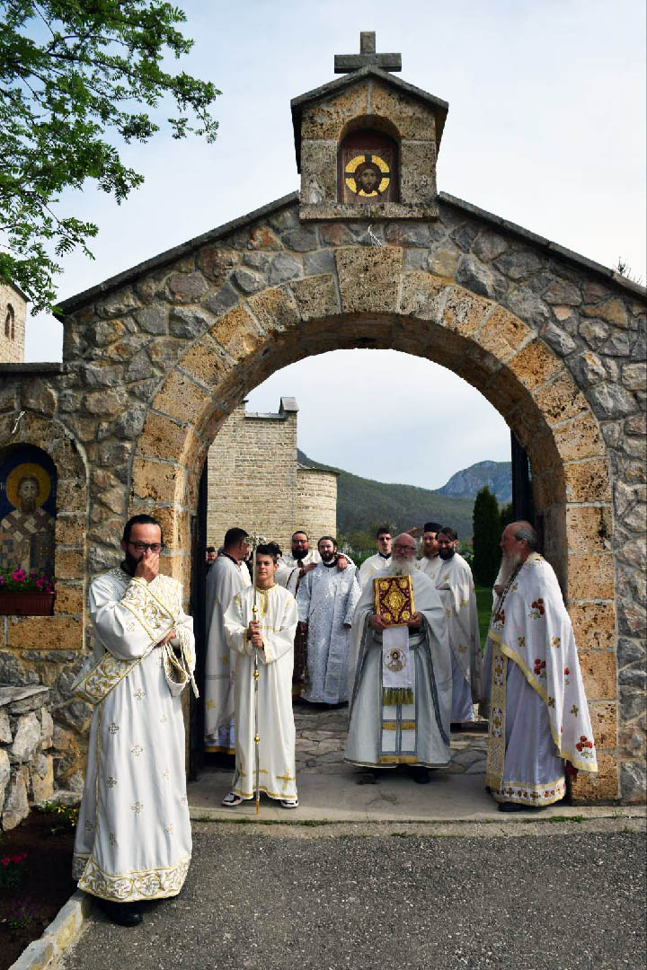 „Славимо празник Васкрсења, ових дана, славећи Светог Ђорђа, а славећи Христово Васкрсење из мртвих не славимо га само зато што је Он васкрсао и што се вазнио на Небеса. Ми од тога не би ништа имали кад би био Он једини који је васкрсао, али је по Његовим нелажним ријечима, које је предао својим ученицима и апостолима, преко њих и свима онима који Њега следују, обећао да ће сви они који у Њега вјерују и који се не боје, заједно са Њим васкрснути. Зато смо се ми овдје окупили, са вјером у Христово васкрсење и да се радујемо једни другима, да волимо једни друге и да помажемо једни другима зато што волимо Христа и Његово Васкрсење“, казао је Његово Преосвештенство.