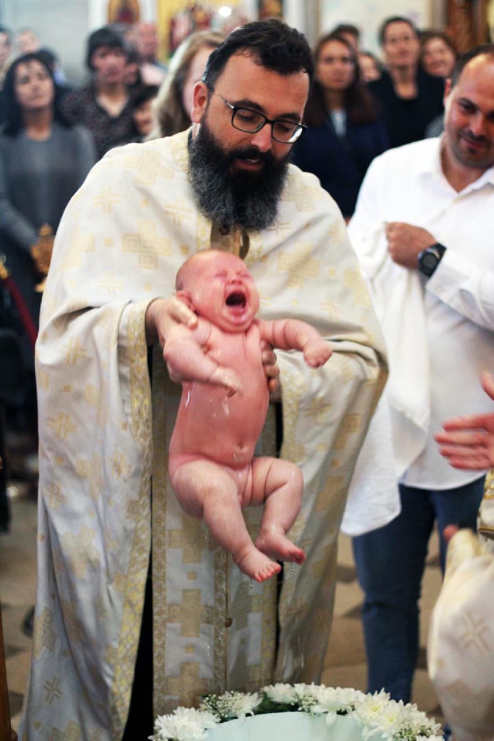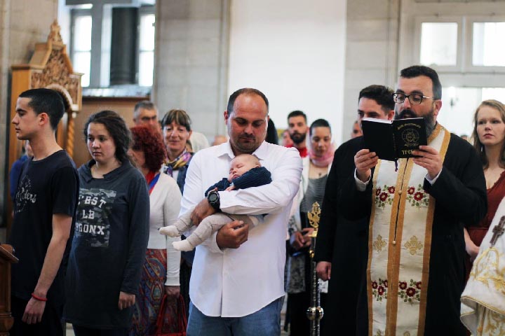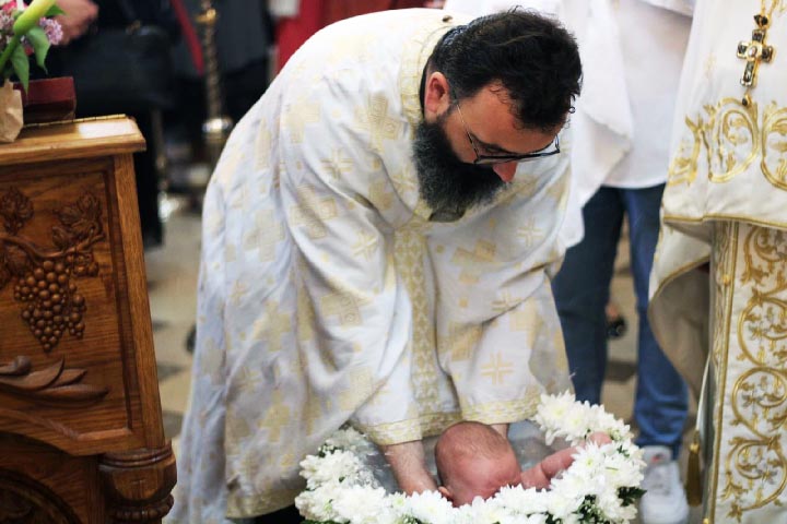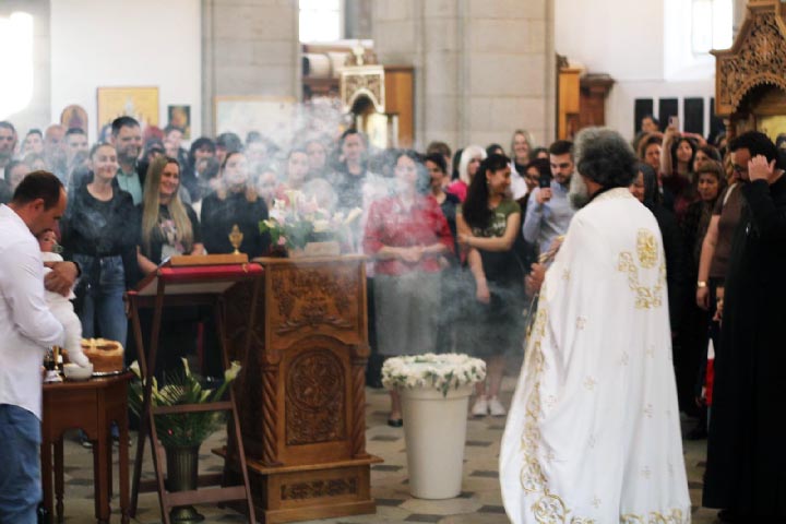 Током Литургије обављено је литургијско крштење маленог Јустина, сина свештеника Крста Станишића, рођеног Никшићанина, који је на служби је у западној Европи.