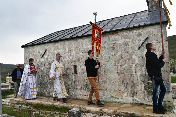 Затим је приређена трпеза љубави коју су припремили мјештани који Светог великомученика и побједоносца Георгија славе као крсну славу.