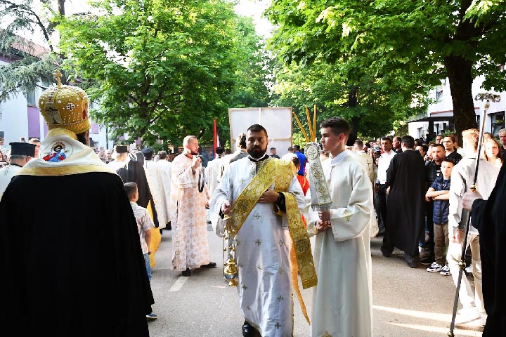 Литија је заустављена на централном градском тргу, одакле су упућени благослови и молитва за здравље и напредак, сабраних и њихових сродника, житеља овога града, али и цијелога свијета.