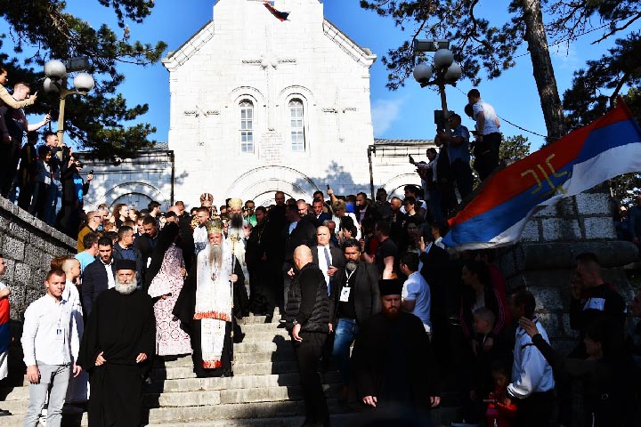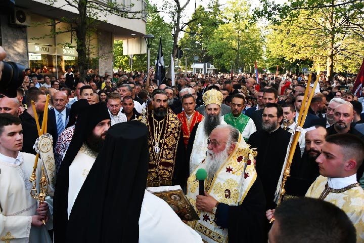 Свенародну литију, која је кренула испред Саборног храма Светог Василија Острошког, у пратњи домаћина Епископа будмиљанско-никшићког г. Методија, предводио је Његова светост Патријарх српски г. Порфирије, који је од 9. маја у канонској посјети светосавским епархијама Милешевској, Захумско-херцеговачкој, Црногорско-приморској и Будимљанско-никшићкој, поводом 425 година од спаљивања моштију Светог Саве и 350 година од упокојења Светог Василија Острошког.