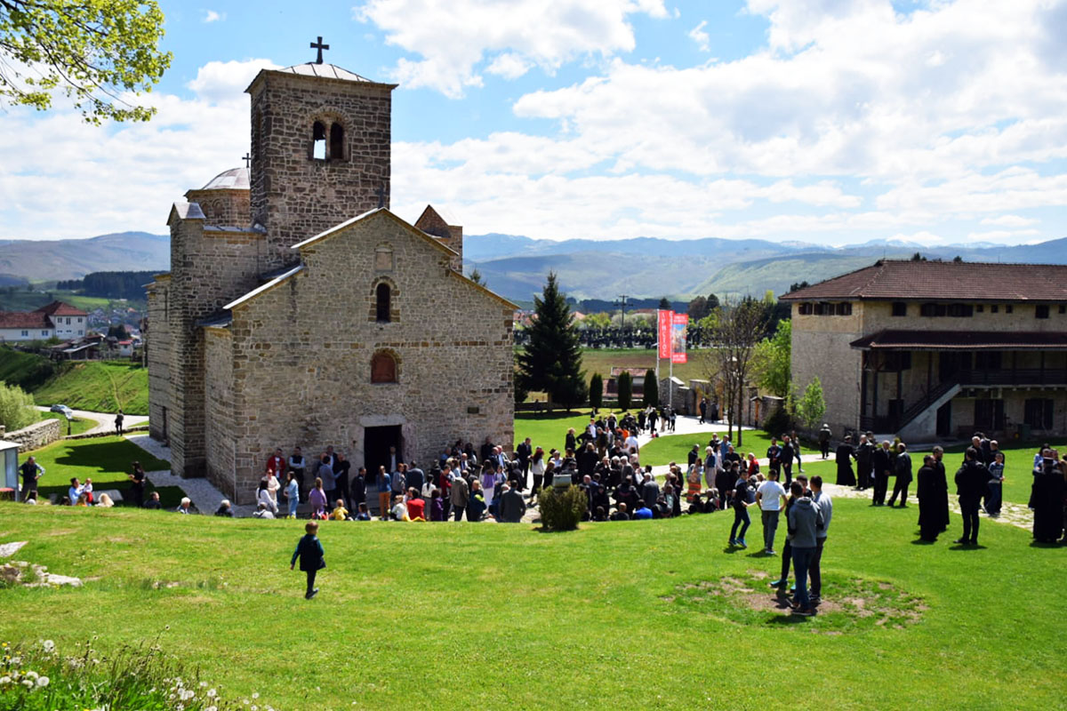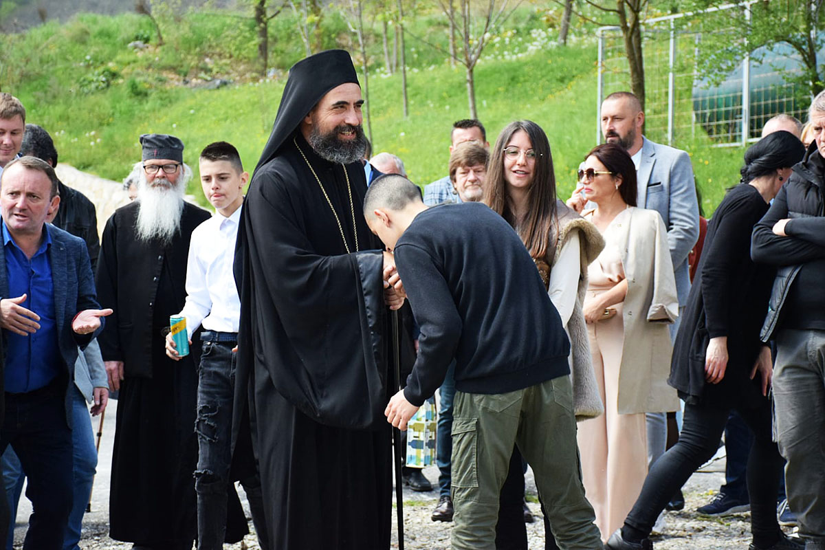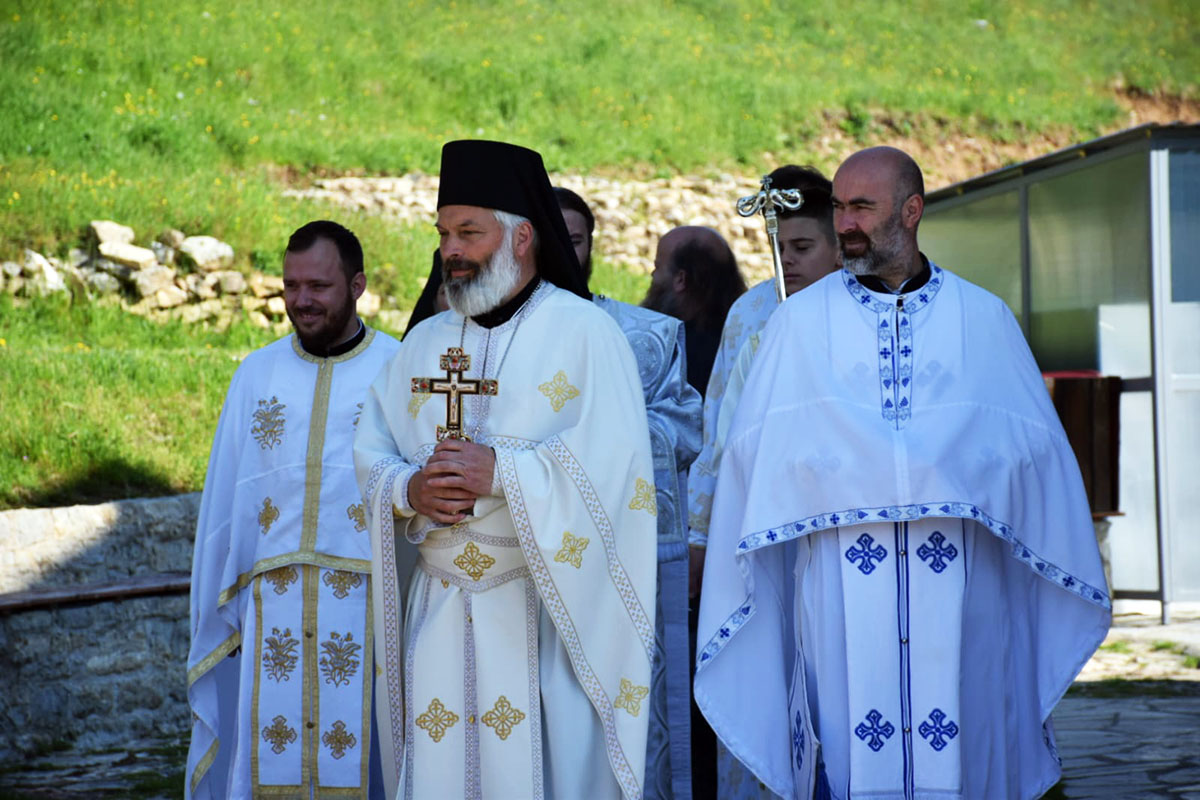 „А Господ каже: Прави молитвеници и поклоници Богу су они који Му се клањају, не на овом или на оном мјесту, него који му се клањају у Духу и истини. Праведни Првослав жупан, који је на овом мјесту, прије 810 година, постројио ову свету обитељ и посветио је у славу Богу, а у спомен Светог великомученика и побједоносца Георгија, који на коњу убија аждају. Знали су тадашњи народни прваци како треба да се испењемо на коња и да убијамо аждаје свих ових вјекова. Али, угледајући се на Светог Ђорђа, првенствено оне аждаје које нас највише изнутра раздиру, а то су братомржња, завист, сплеткарење, међусобни раздори и свађе, јер каже Господ: Не може се кућа раздијелити, осим ако се сама по себи изнутра не раздијели“, бесједио је Његово Преосвештенство, додавши да ни царство не може пропасти ако се изнутра не распадне.