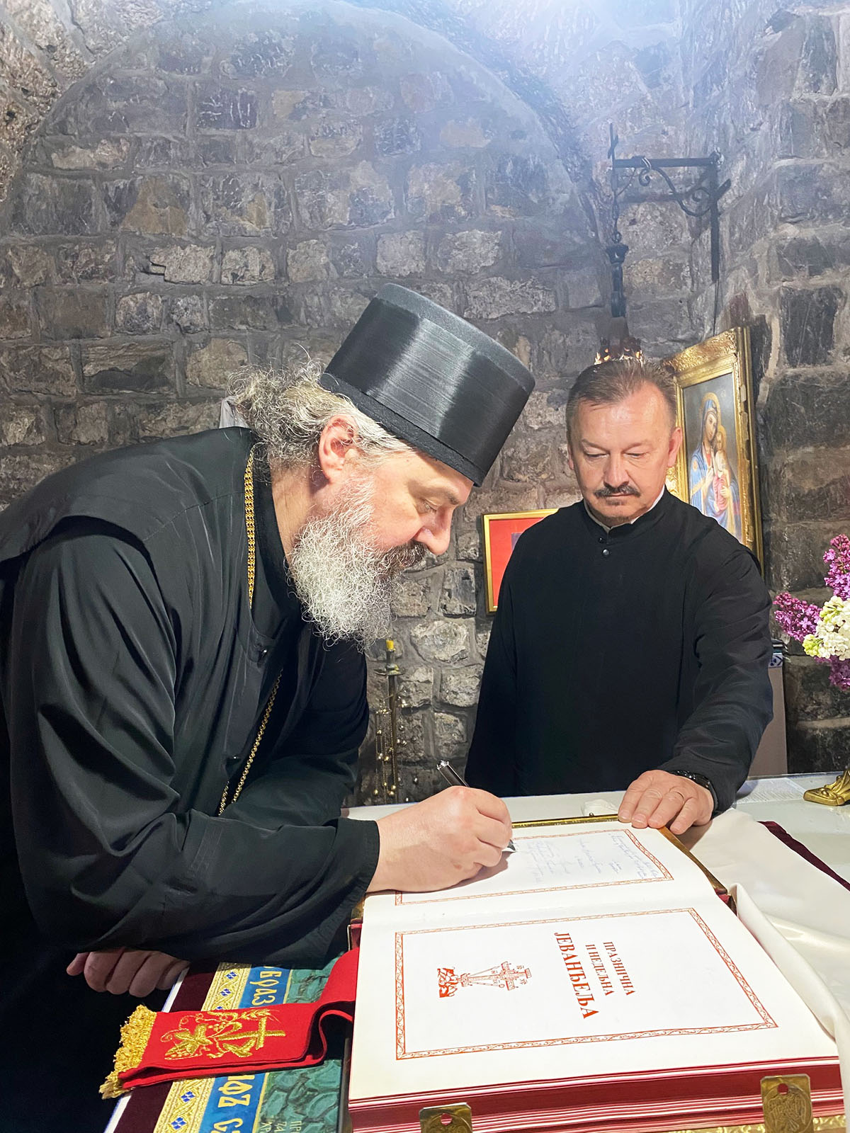 Уваженог Епископа Исихија са историјатом ових светих мјеста упознали су Епископ будимљанско-никшићки Г. Методије и протојереј-ставрофор Дарко Пејић, архијерејски намјесник бјелопољски.