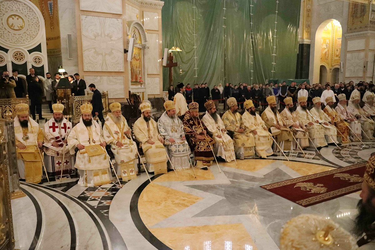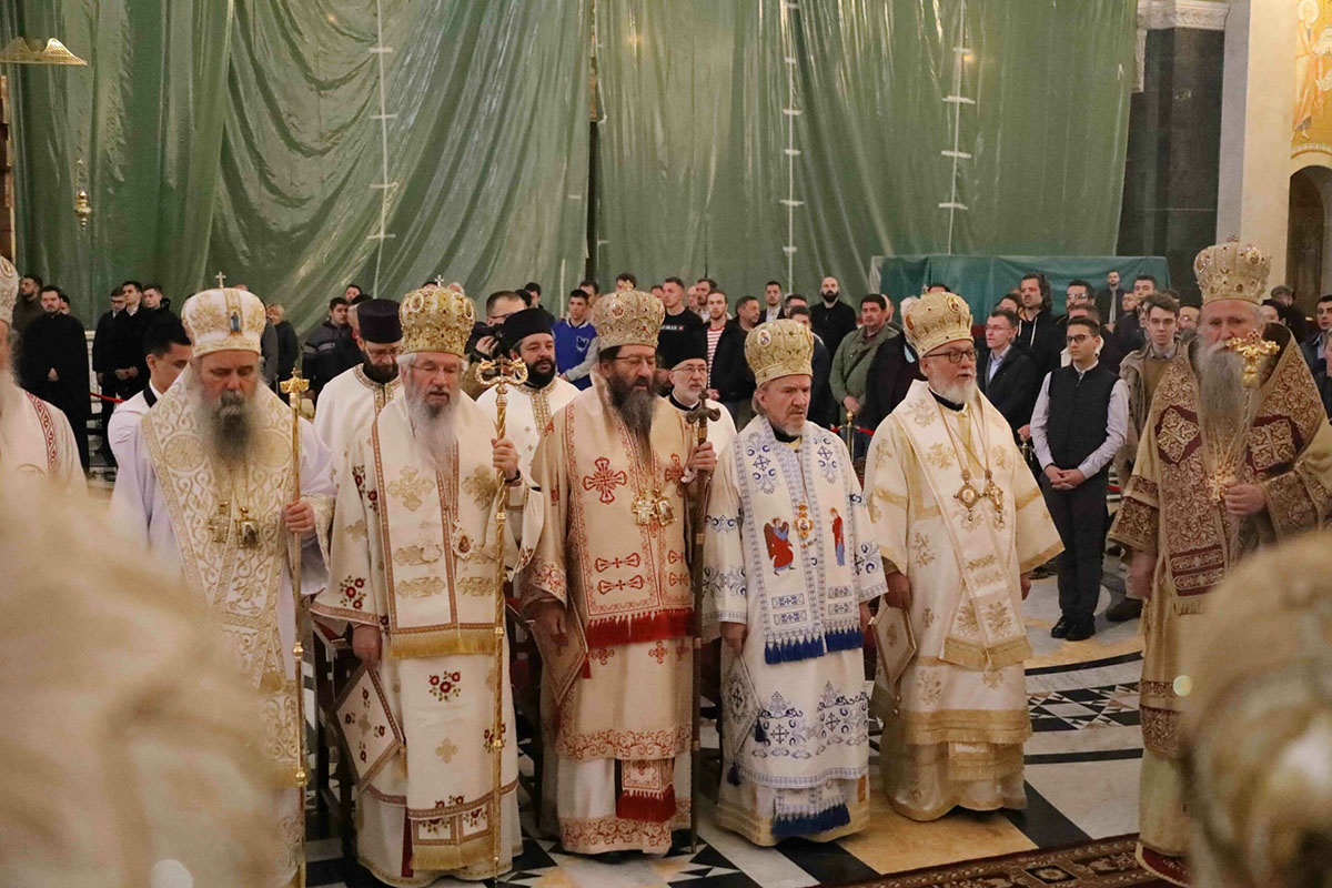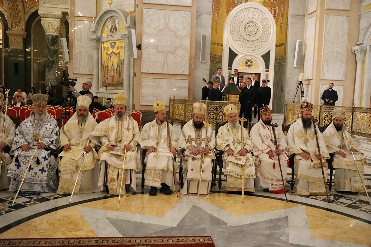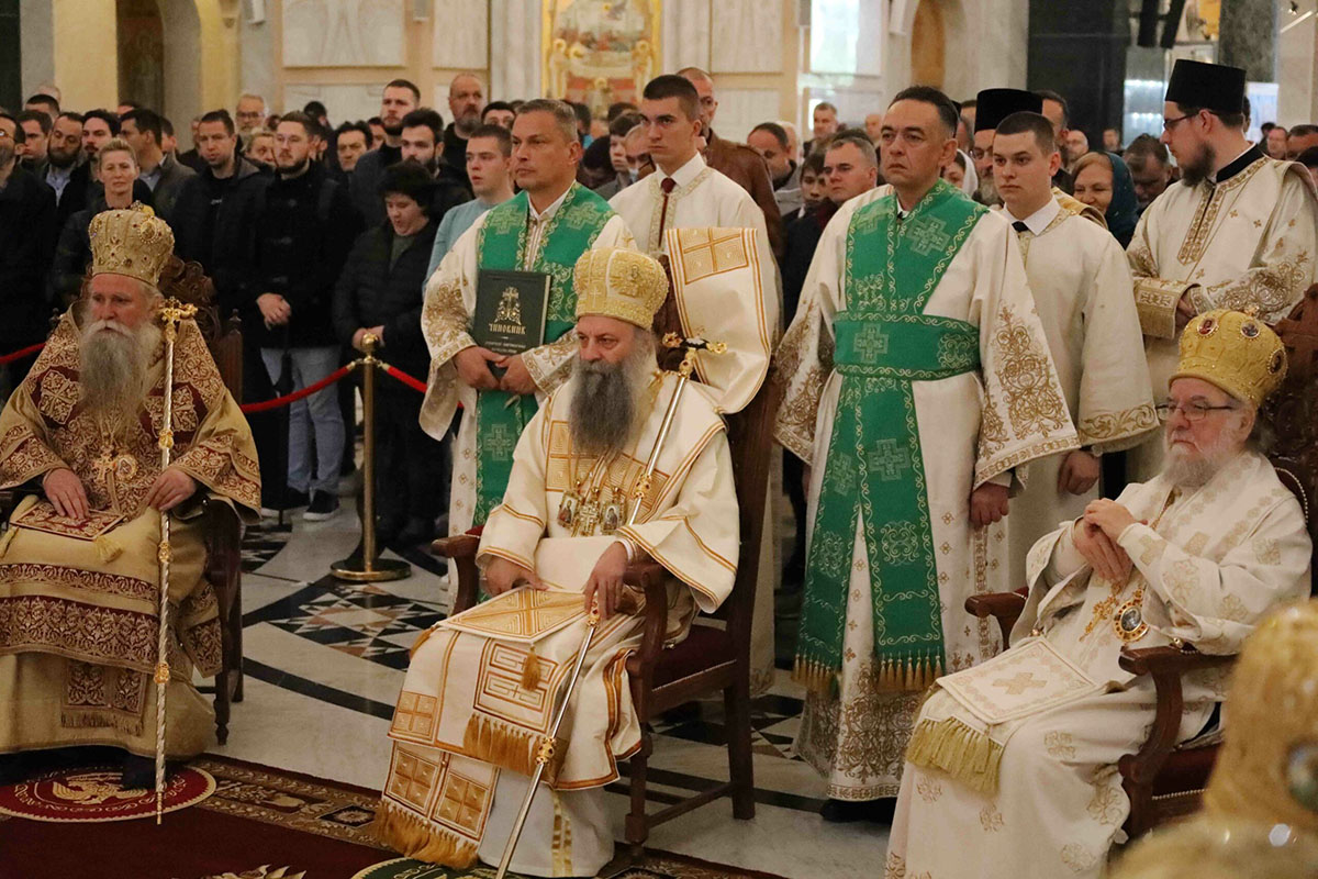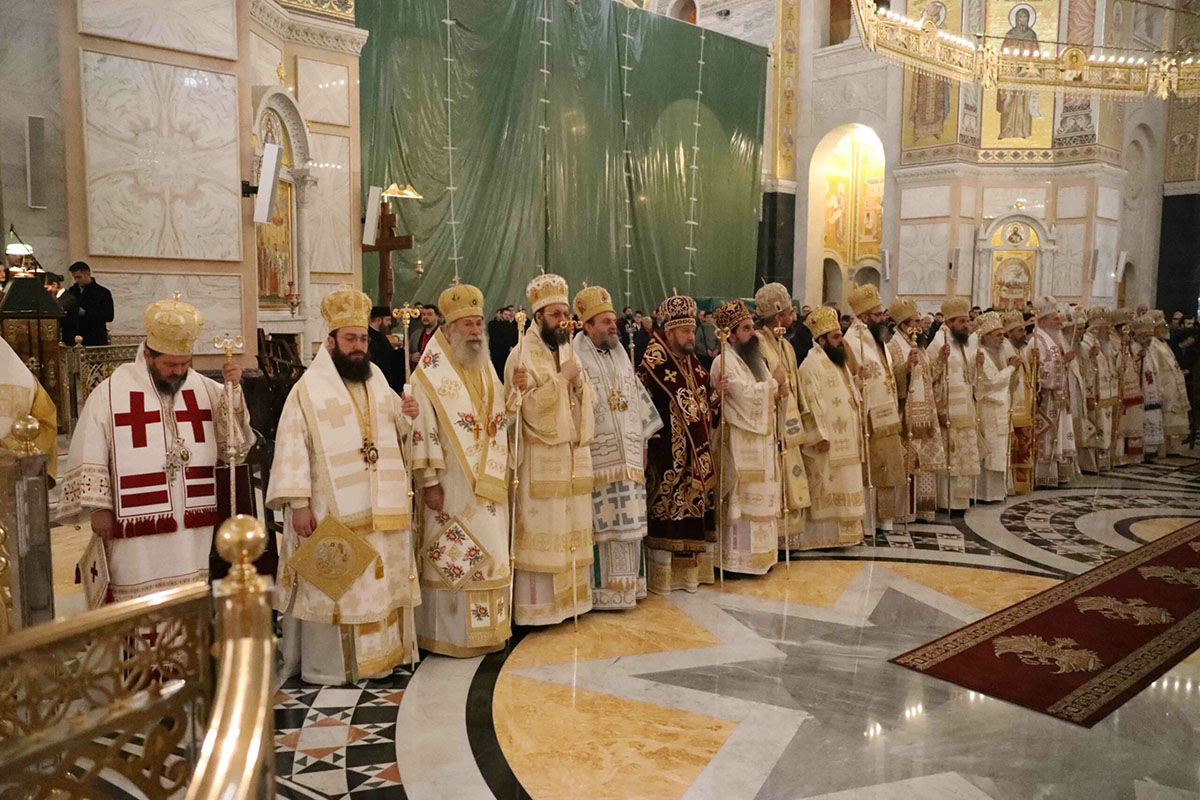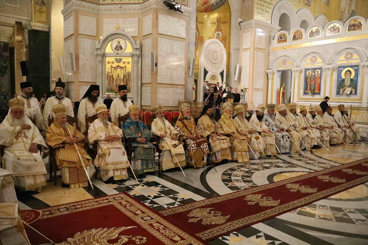 – Браћо архијереји, браћо свештеници, драга браћо и сестре, по промислу Божјем и по благодати Духа Светог ми, архијереји Српске Православне Цркве, сабрали смо се у престоници нашој и служили свету Литургију овде, у саборном заветном храму нашег народа. Служили смо свету Литургију, како је дивно владика Игњатије рекао, да бисмо показали да је Црква сабор, заједница. Сваки сабор добија свој смисао и своју пуноћу само кроз сабор који јесте света Литургија на којој нисмо само сабрани ми људи, него смо сабрани у Христу и око Христа са свим светима и сви ми заједно.