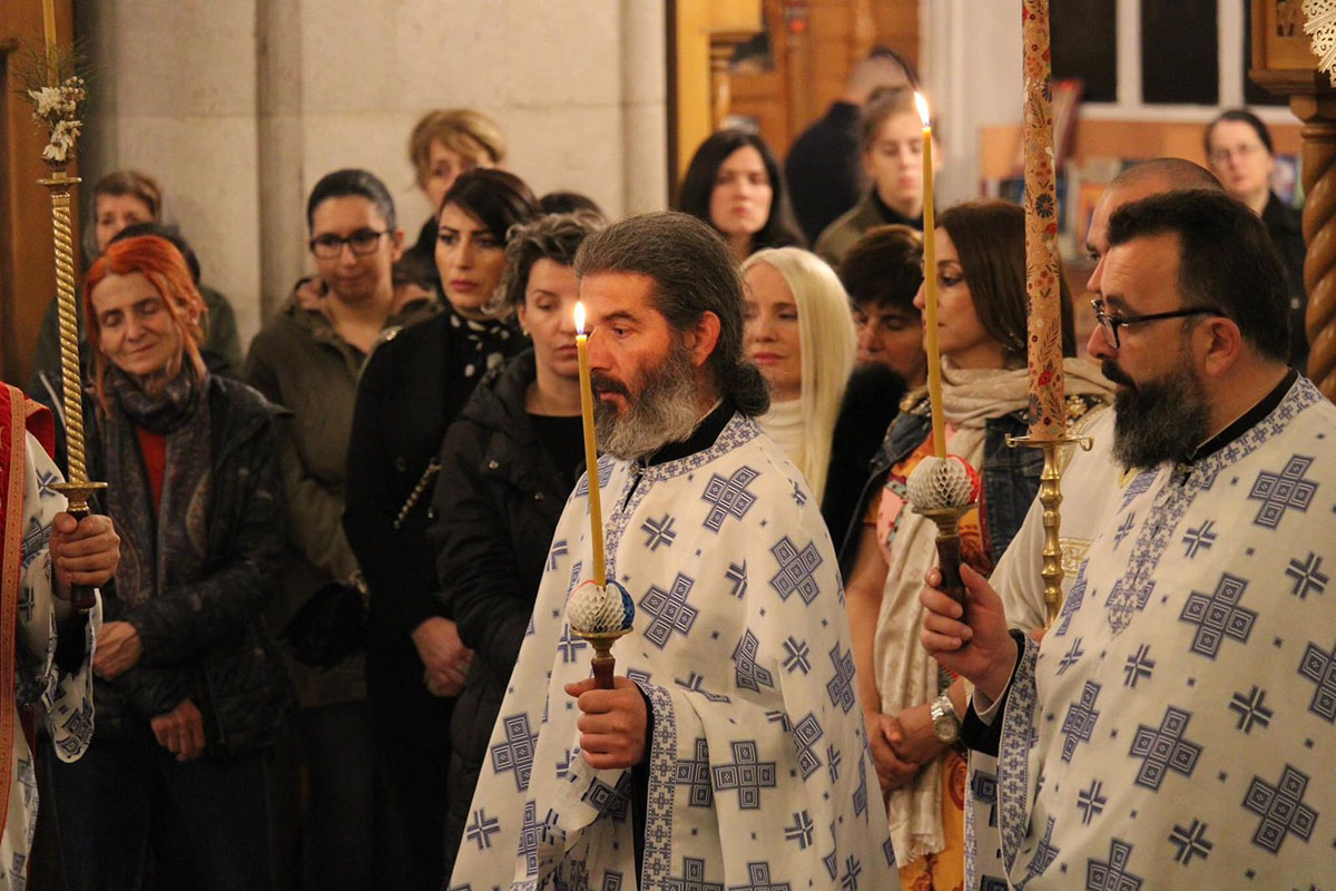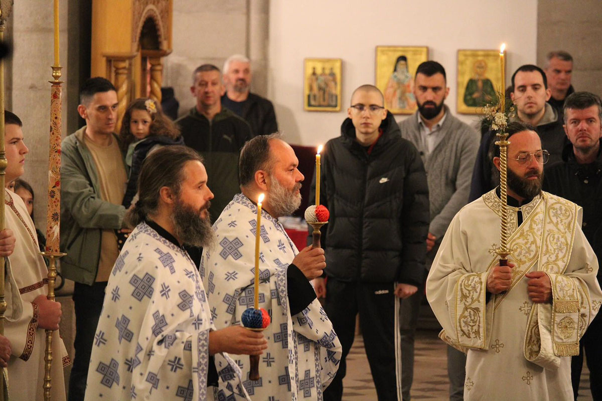 Празнично бденије уочи празника Светог Василија Острошког у никшићком Саборном храму.