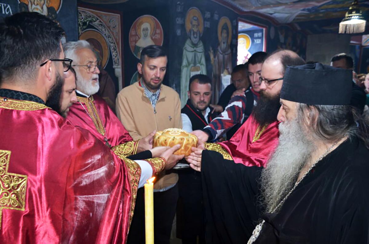 Сабранима је прије причешћивања вјерних бесједио о. Роман. Он је казао да је Преподобни Исаија био претеча Светог Василија Острошког који се подвизавао у острошкој греди и острошкој пустињи.