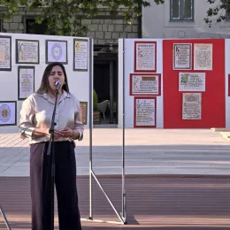 „Она је облик у којем се исписују најтананије мисли, молитве, емоције и умјетнички израз. Кроз ову изложбу, данас славимо и вјештину, и љепоту и посвећеност. Свако слово, пажљиво и вјешто исписано, свједочи о поштовању према традицији, али и о савременој тежњи ка очувању културне баштине. Наши учесници, калиграфи и мајстори рукописа, својим дјелима показују да је ћирилица и даље жива, снажна, и инспиративна. Нека ова изложба буде подсјећање да љепота постоји у трагу пера, у тишини странице, у вјештини руке која не жури. Нека нас подстакне да његовaњем ћирилице чувамо не само слово, већ и дух народа ком припадамо“, нагласила је Мандић.