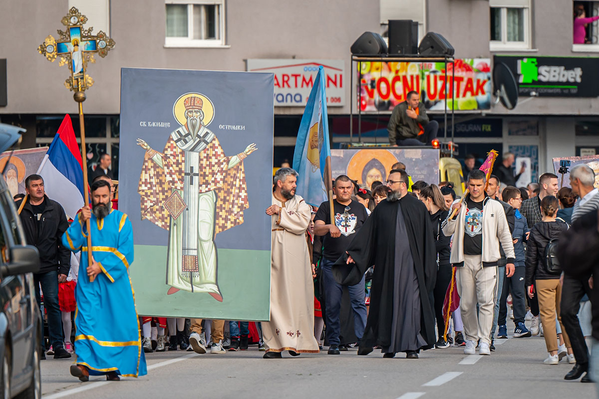 Након што је у никшићком Саборном храму литургијски прослављен празник Светог Василија Острошког, небески заштитник Никшића и његових житеља, који се од ове године званично прославља као слава града, послијеподне је кроз Никшић прошла традиционална Световасилијевска литија.