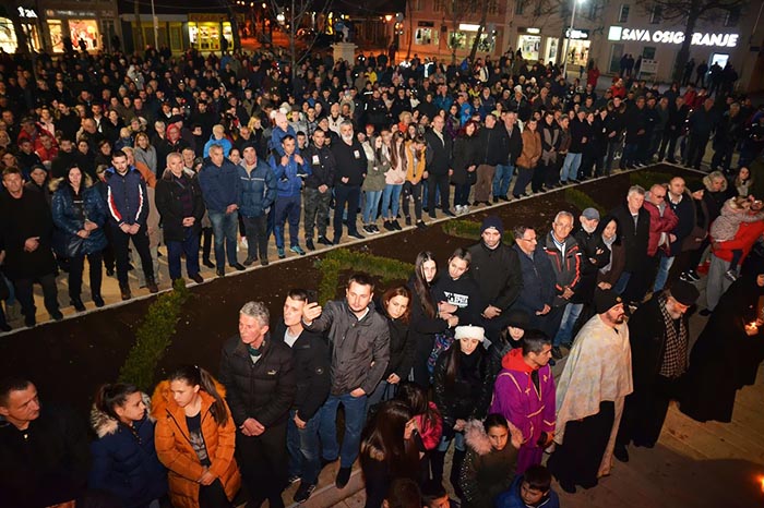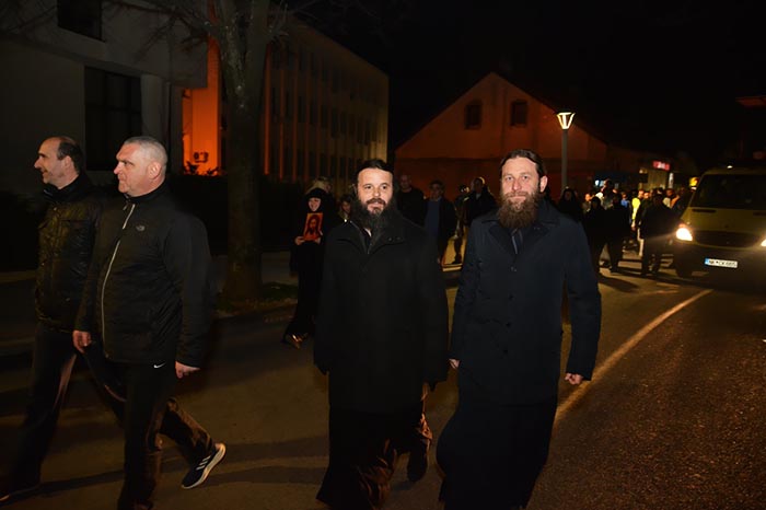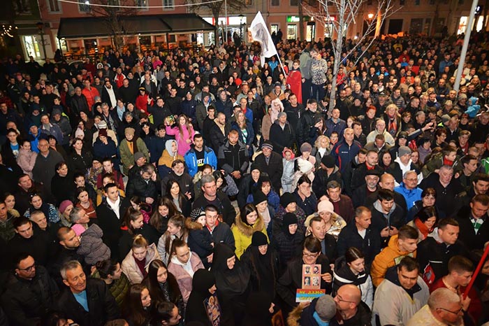 „Свих ових вечери, овим вашим великим, а надасве мирним и достојанственим саборовањем у одбрани светиња и вјере православне, ви сте на дјелу посвједочили да сте вјерни синови и кћери своје свете Саборне апостолске светосавске Цркве, да исту волите, поштујете и истински доживљавате као своју духовну Мајку, која вас је духовно родила и отхранила, дубоко свјесни чувене светоотачке максиме: Коме Црква није мати, томе ни Бог није отац“, бесједио је свештеник Крушић.