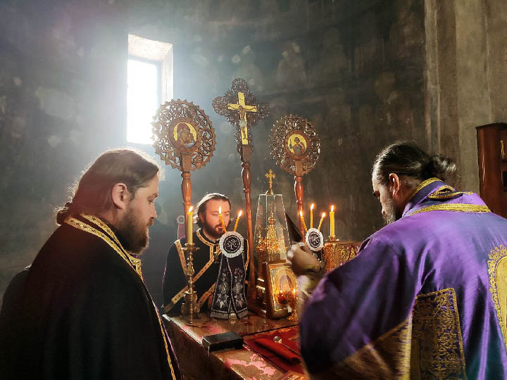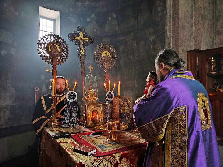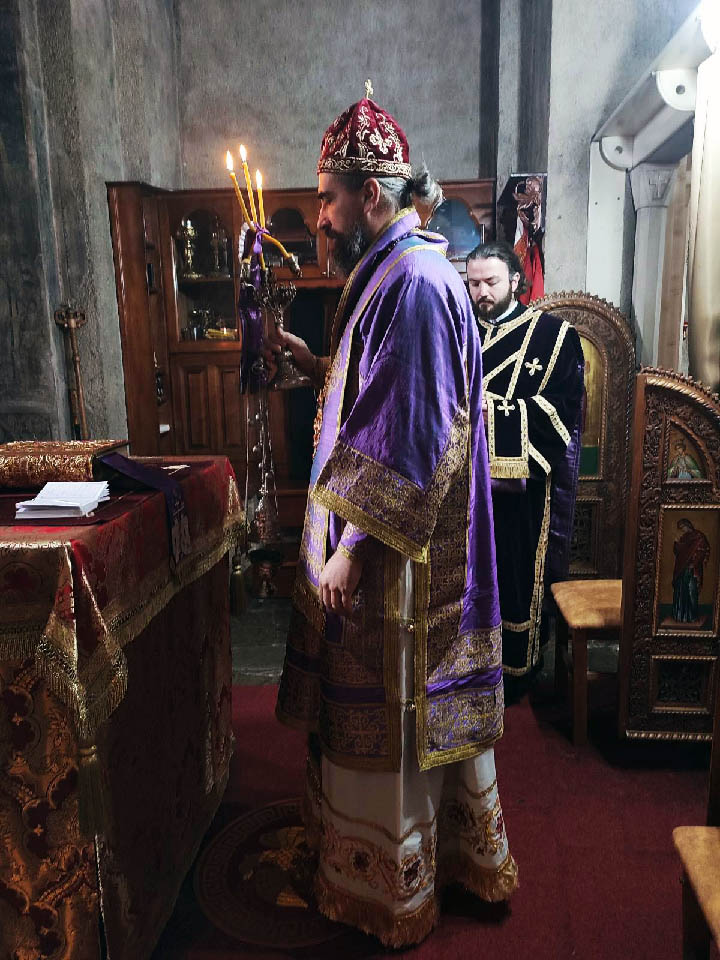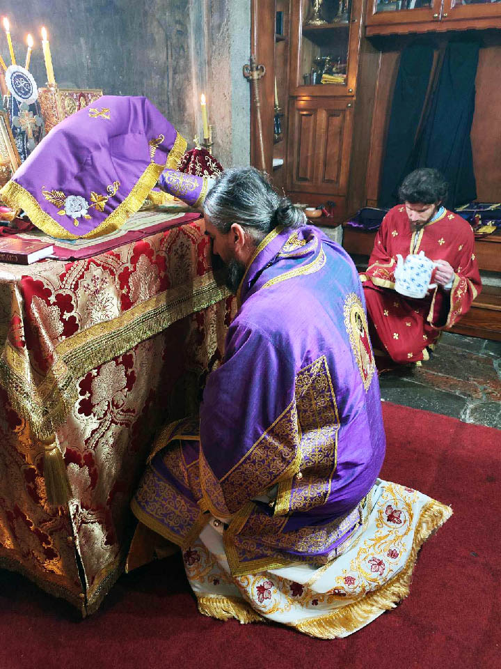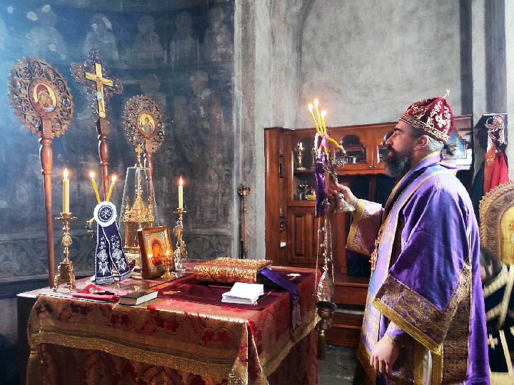 Његово Преосвештенство Епископ будимљанско-никшићки Г. Методије служио је у петак прве недјеље Часног поста, на празник Светог Порфирија, 11. марта 2022. године, Литургију пређеосвећених часних дарова, у катедралном манастиру Епархије будимљанско-никшићке, Ђурђевим Ступовима.