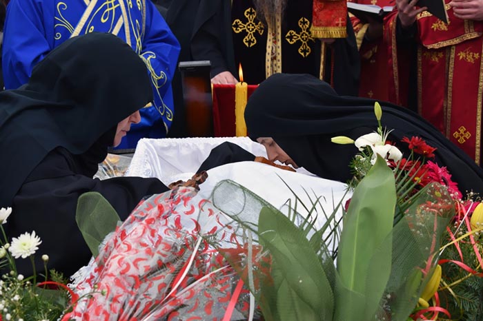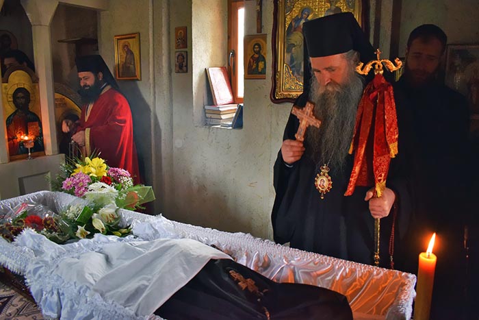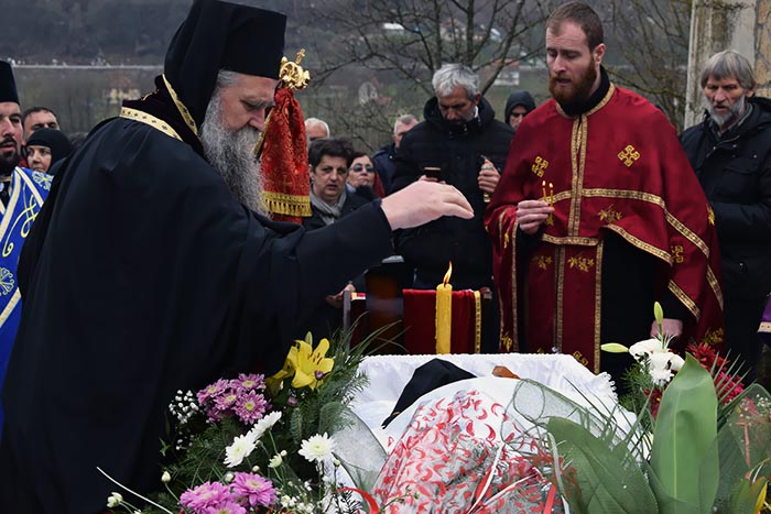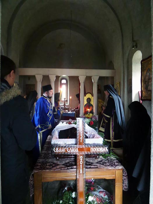 „Сабрали смо се данас овдје као хришћани да се помолимо Богу за душу наше мати Евангелије, да испратимо ону која је са нама била и била дио нас, да је испратимо у наручје Божје са надом да ћемо се срести у Царству небеском. Заједница која је успостављена овдје на земљи наставља се на Небу. Тугујемо због растанка, али нијесмо без наде, јер имамо вјеру у Христа Господа Који је крв своју излио на Крсту за опроштај наших грехова и Који је живот свој дао да бисмо ми стекли нови живот. Стојимо сабрани са вјером у Христа Васкрслог и са надом да ће и мати Евангелија, сви ми заједно, бити судионици Његовог Васкрсења, Његовог вјечног Царства“, рекао је Владика будимљанско-никшићки.