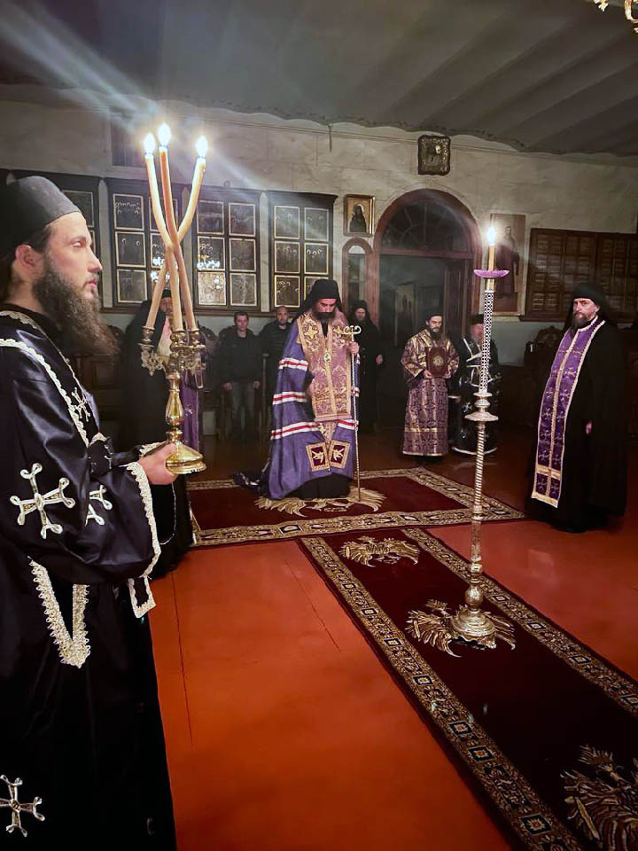 У послеподневним часовима, Преосвећени Епископ Методије је посјетио руски манастир Светог Пантелејмона, гдје је у част његовог доласка у овај древни светогорски манастир служена доксологија, а у наставку је одслужено бденије.