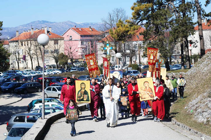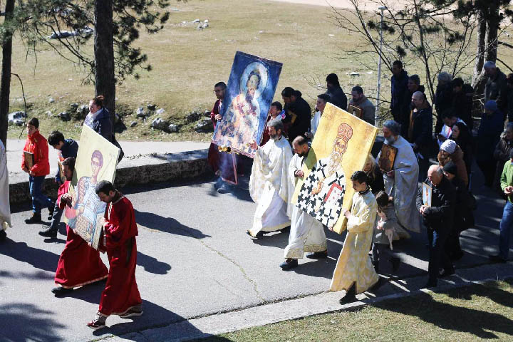 У Недјељу Православља, 13. марта 2022. године, света Литургија је служена у Саборној цркви Светог Василија Острошког, у Никшићу.
