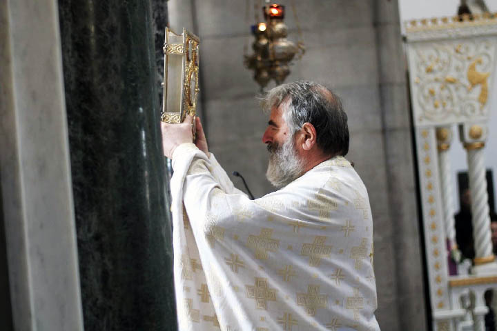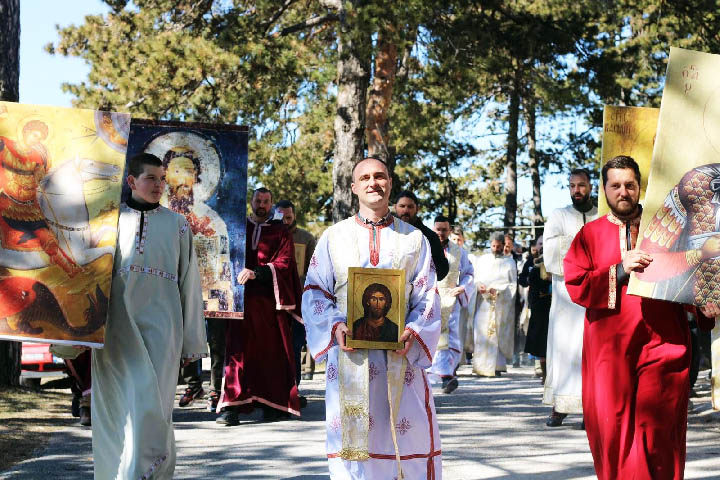 Затим је извршена свечана Литија са иконама око Саборне цркве, након које је, по повратку у Храм, прочитан Синодик Православља.