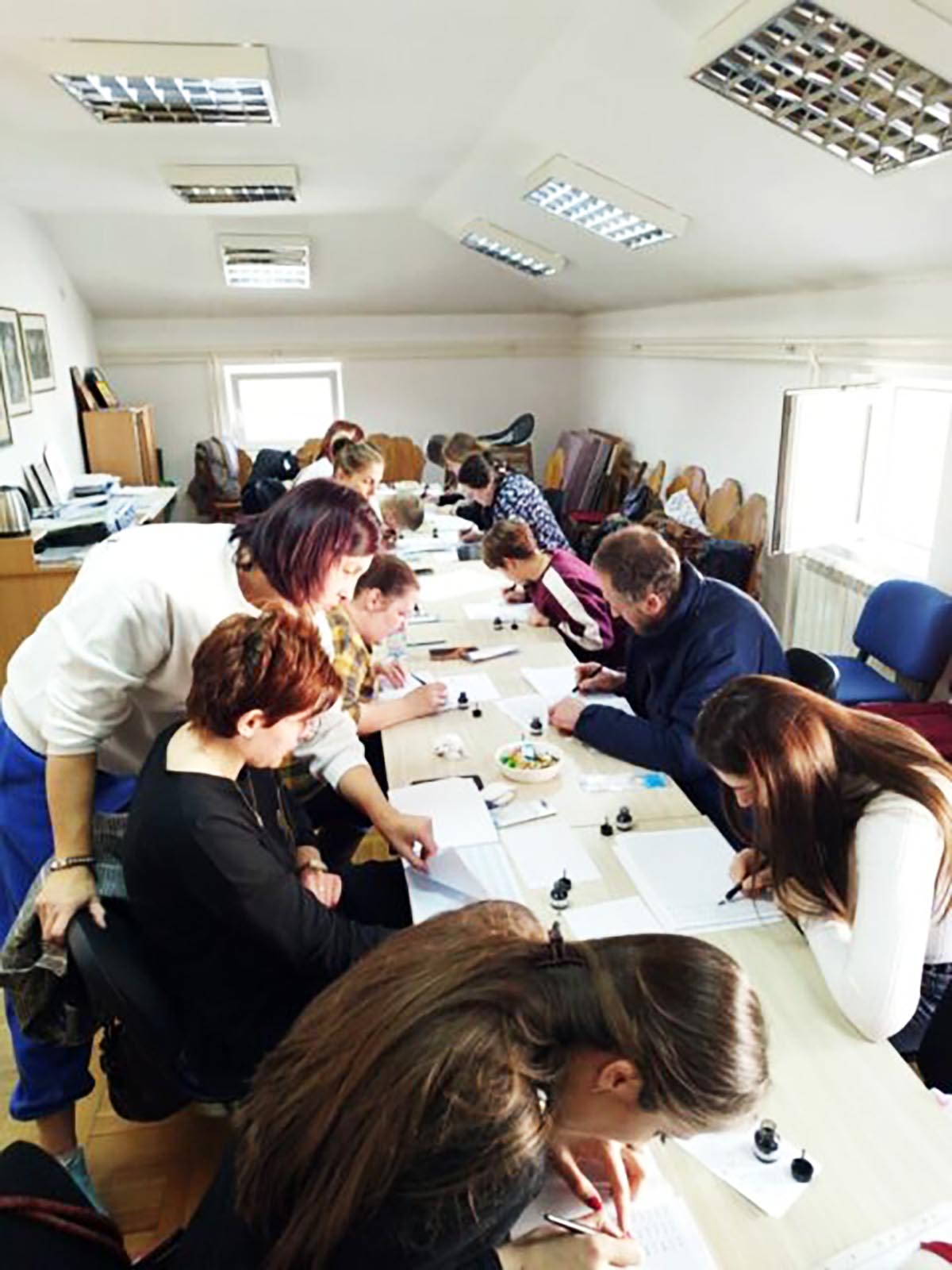 Курс калиграфије трајаће до маја, а привешће се крају изложбом, која ће се организовати, у оквиру „Дана Светог Василија Острошког“, у Никшићу. Учешће у традиционалној културно-духовној манифестацији, посвећеној Светом Василију Острошком, небеском заштитнику Никшића и његових житеља, додатна је инспирација за овладавање овом древном вјештином исписивања текста .