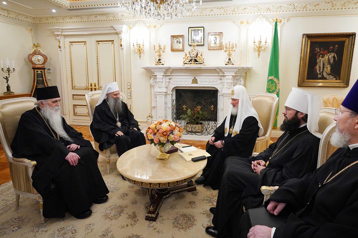 Његову Светост Патријарха српског г. Порфирија, који је у Москву допутовао са члановима свештене пратње ради молитвеног испраћаја и погреба у Господу уснулог владике Антонија, свог викара, примио је данас Његова Светост Патријарх московски и све Русије г. Кирил.