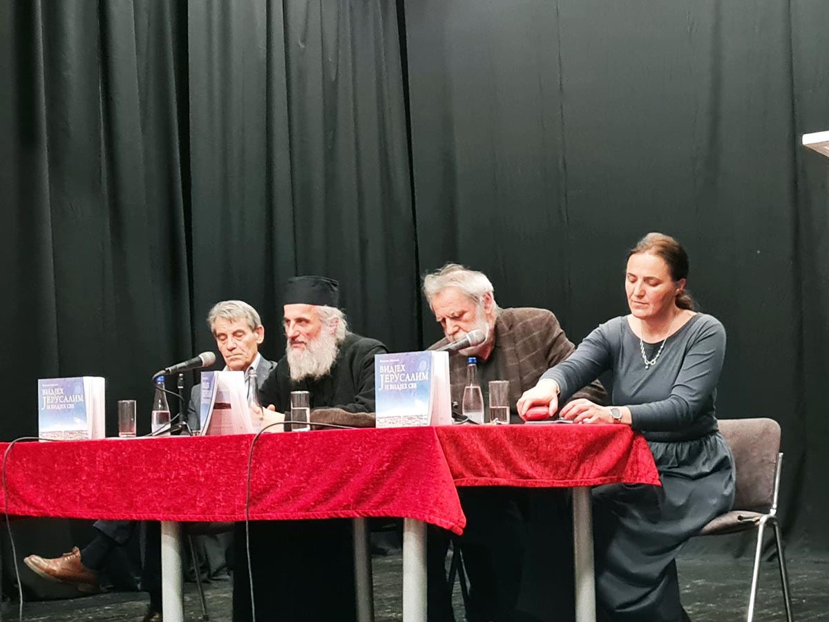 Обратио се и аутор, Веселин Матовић, који је подсјетио на ауторе који су писали о Јерусалиму, наводећи да је веза Срба са Јерусалимом од Светог Саве и његова љубав за Јерусалим, чудесна. Послије њега стално су, и то у најтежим временима, Срби из разних крајева путовали у Јерусалим, чак и Арсеније Чарнојевић, чији путопис, нажалост, по ријечима Матовића, није сачуван. Први цјеловитији извјештај оставио је Доментијан, који је путовао са Светим Савом, потом Јеротеј Рачанин, а по мишљењу Матовића, најљепше су о путовањима у Јерусалим писали Митрополит Сава Косановић и Јован Дучић.