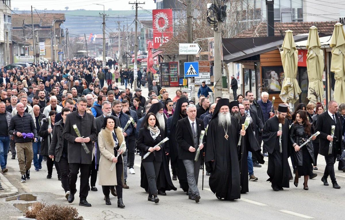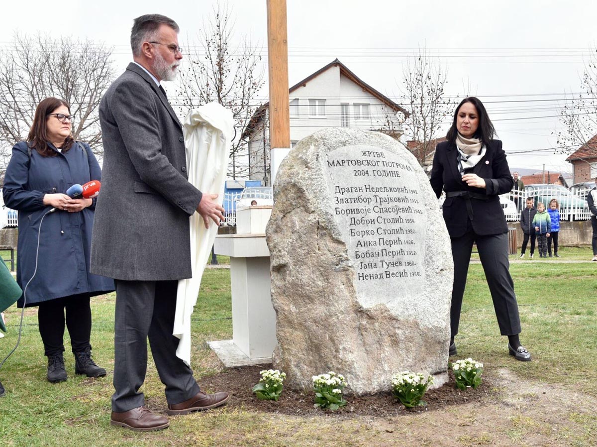 Након парастоса, окупљени су кренули пут Дома културе где су на обележју МИСИНГ положили беле руже у знак сећања на жртве Мартовског погрома.