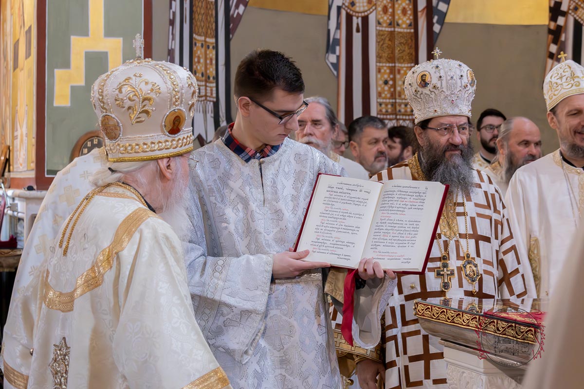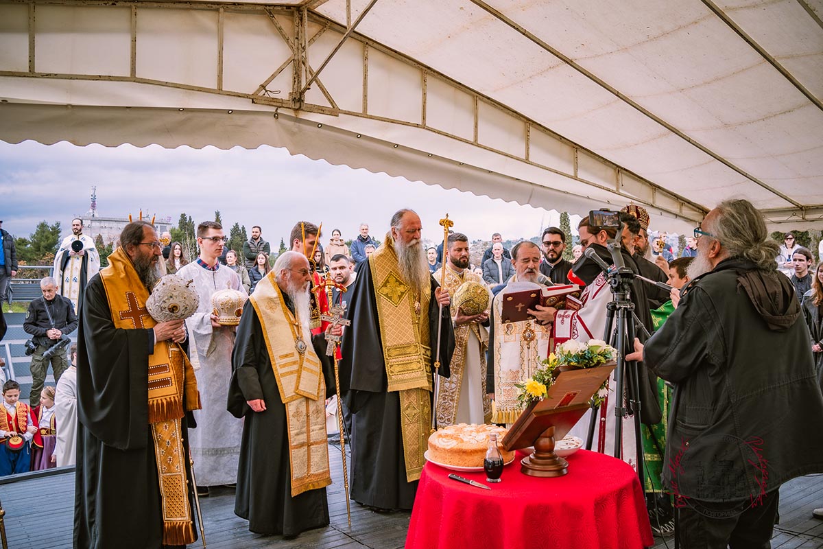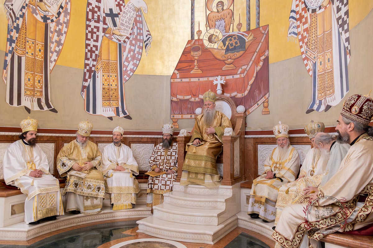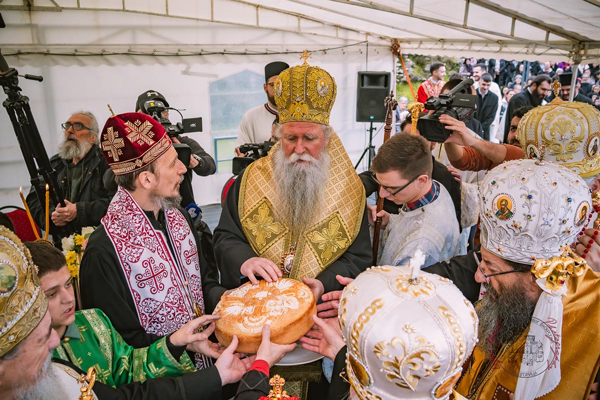 Светом архијерејском литургијом у Саборном храму началствовао је Његово високопреосвештенство Митрополит берлински и њемачки Руске заграничне цркве г. Марко, уз саслужење високопреосвећене господе: Архиепископа цетињског Митрополита црногорско–приморског Јоаникија, Архиепископа и Митрополита жичког Јустина, Архиепископа и Митрополита милешевског Атанасија, Архиепископа мостарско-требињског и Митрополита захумско-херцеговачког и стонско-приморског Димитрија, преосвећене господе епископа: пакрачко-славонског Јована, буеносајреског и јужно-централноамеричког, администратора Митрополије загребачко-љубљанске, Кирила, будимљанско-никшићког Методија и диоклијског Пајсија, многобројног свештенства и свешеномонаштва, у молитвеном присуству вјерног народа.
