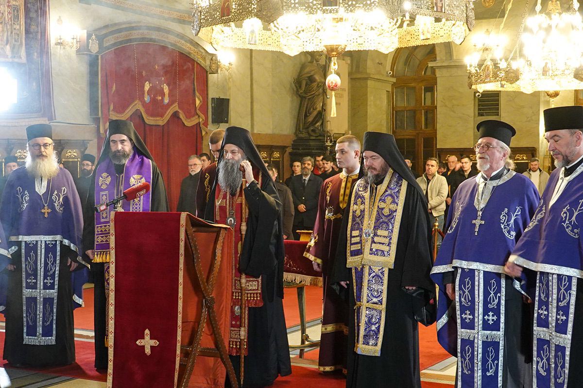– Међутим, то што се молимо на овај начин за људе које живе на Косову и Метохији истовремено јесте и наша молитва за сву нашу браћу и сестру где год да живе, и овде у Београду и широм Србији. Молимо се да сви разумемо, најпре ми - свештеници, онда и сви остали да смо једни другима потребни и да је највећи дар и благослов Божји то што смо различити, што смо сви непоновљиви, што свако има свој посебан печат, посебан дар и што има могућност да разуме и да види једну те исту ствар на другачији начин, тј. на свој начин, на посебан начин. Нема већег дара Божјег од тог, а то нам није дато да би нас раздвајало и да бисмо се супротстављали једни другима због тога што смо другачији, него нам је дато баш због тога што је дар Божји, дато нам је као могућност да можемо приступити један другоме, да можемо имати пут један према другоме на основу свога дара, свога талента, својих способности и својих могућности, да можемо отвореног срца слушати једне и друге, износити своја мишљења једни у односу на друге и кориговати свако себе у мери у којој је то неопходно да бисмо у различитости могли бити једни, не истоветни, једни са другим. Различито може и треба да буде једно, на шта нас позива реч Божја да сви буду једно, да сви будемо заједно, а без Христа у центру нашег живота и наших живота то није могуће постати – нагласио је патријарх Порфирије и закључио: