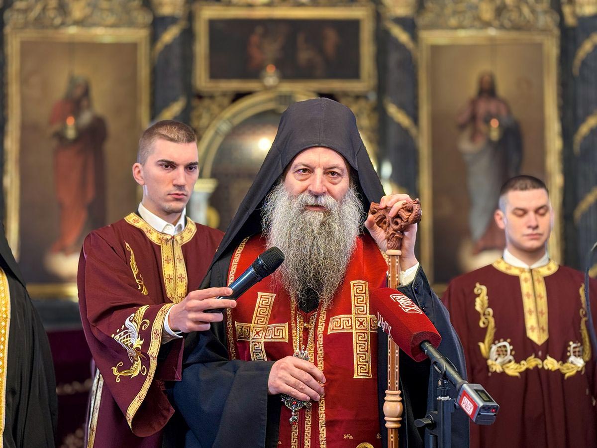 – Наш народ, браћо и сестре, наш народ је народ Христов, наш народ је православан народ, наш народ верује речи Божјој. Наш народ је запечаћен именом Сина Божјег, а то значи крстом. Крст је сила и знамење нашег народа. Крст је предукус тајне победе, победе Христове над највећим нашим непријатељем, над највећим непријатељем читавог Христовог рода, над тројединим непријатељем: над ђаволом, грехом и смрћу; и зато, како је рекао велики песник: Крст носити нама је суђено – истакао је патријарх Порфирије и подсетио: