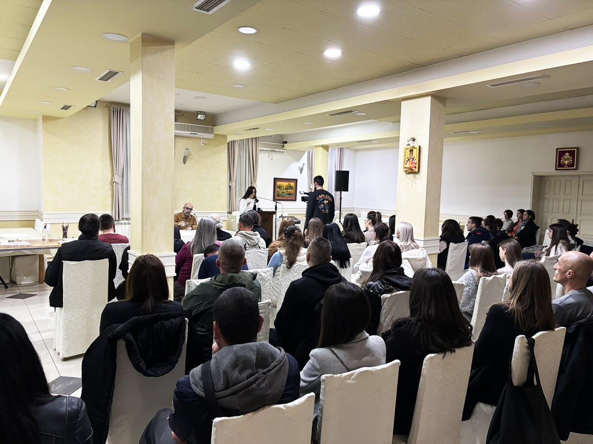 Чланица Братства Марија Булајић била је модераторка предавања и након уводне ријечи и најаве госта, о самом процесу израде иконе и начина рада говорио је господин Маркуш.