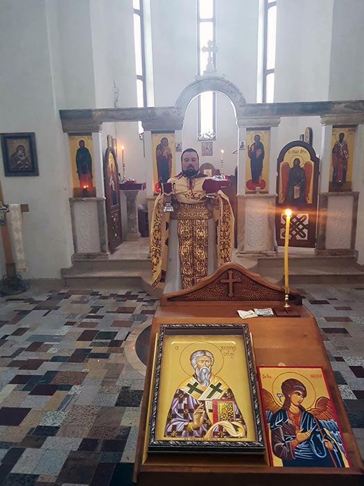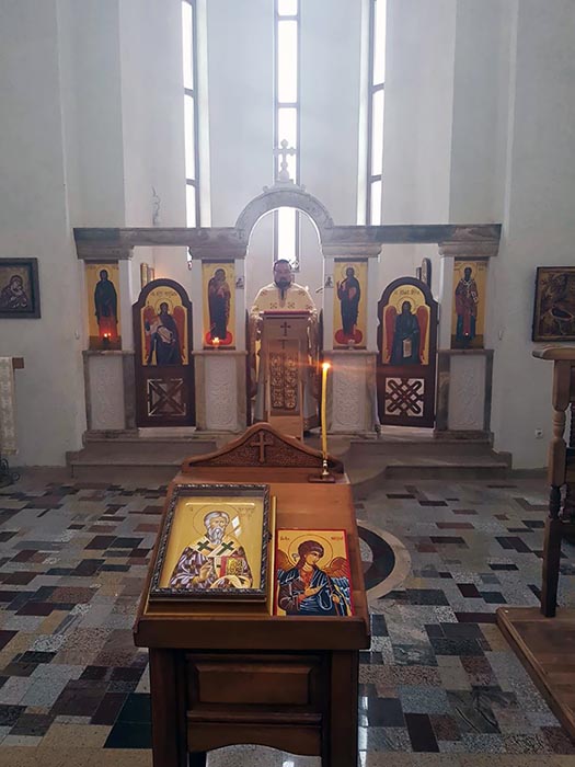 У сриједу, 21. новембра, на Арандјеловдан служена је Света Литургија у цркви Свртог Јевстатија на Трепчи. Свету Литургију служио је јеромонах Сава (Вукајловић).
