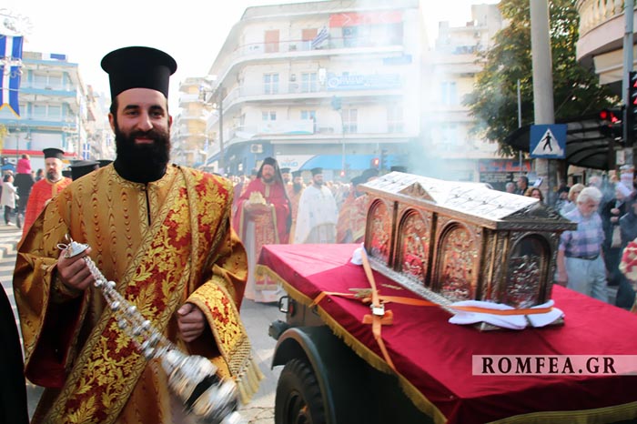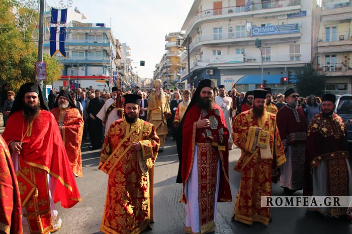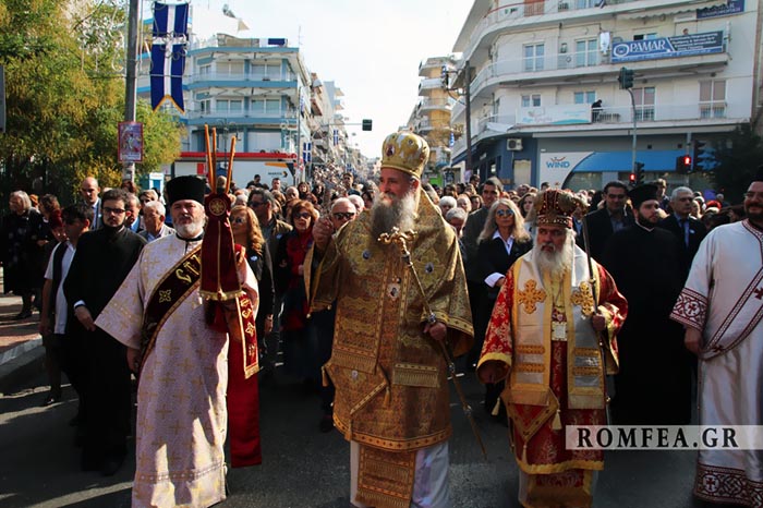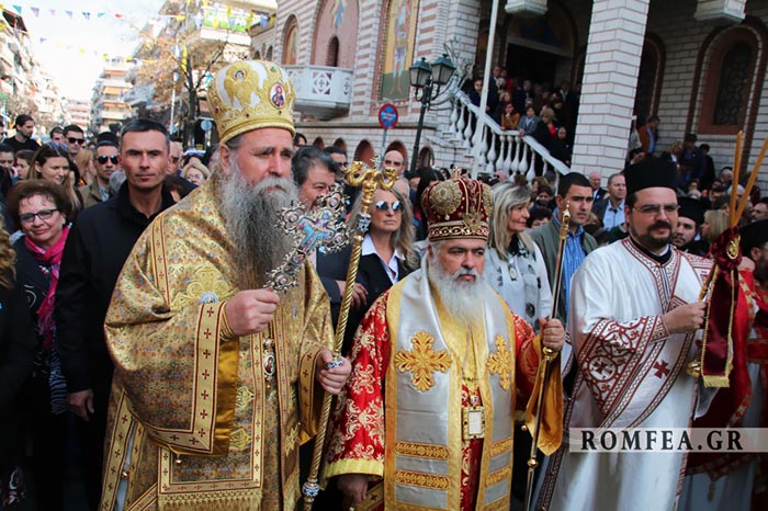 По завршеном богослужењу кроз Неаполис је прошла свечана литија са честицом моштију Светог великомученика Георгија, коју су пратили одреди војске и полиције, градска музика, свештенство и вјерни народ.